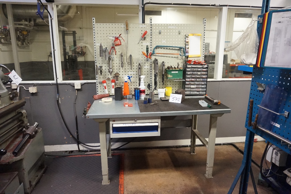 Los 572: Bench 1.5m x 800mm with 1 Drawer, Centres, Taps, Carbide Tips and Drills