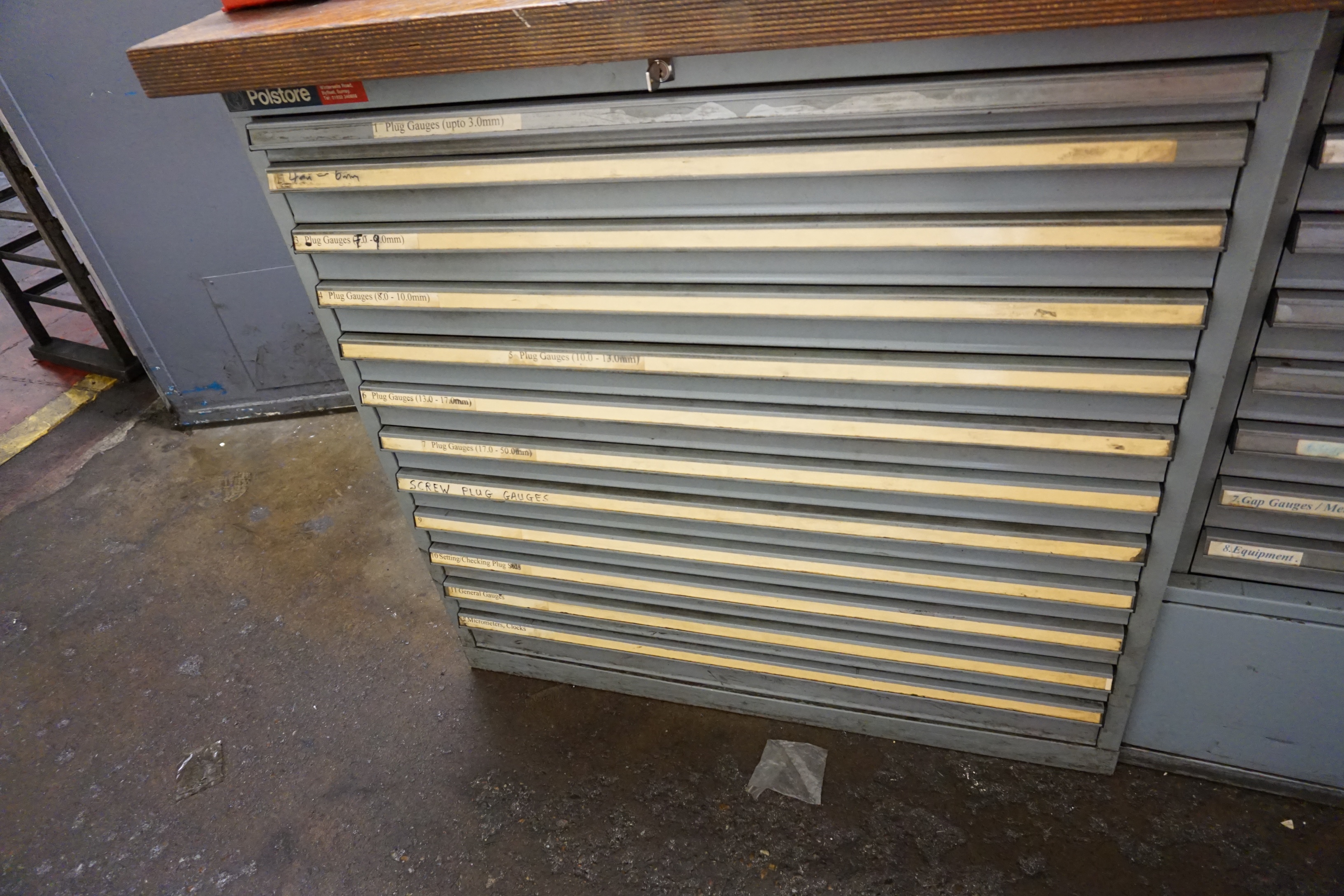 12 Drawer Cabinet with Large Qty of Plug Gauges