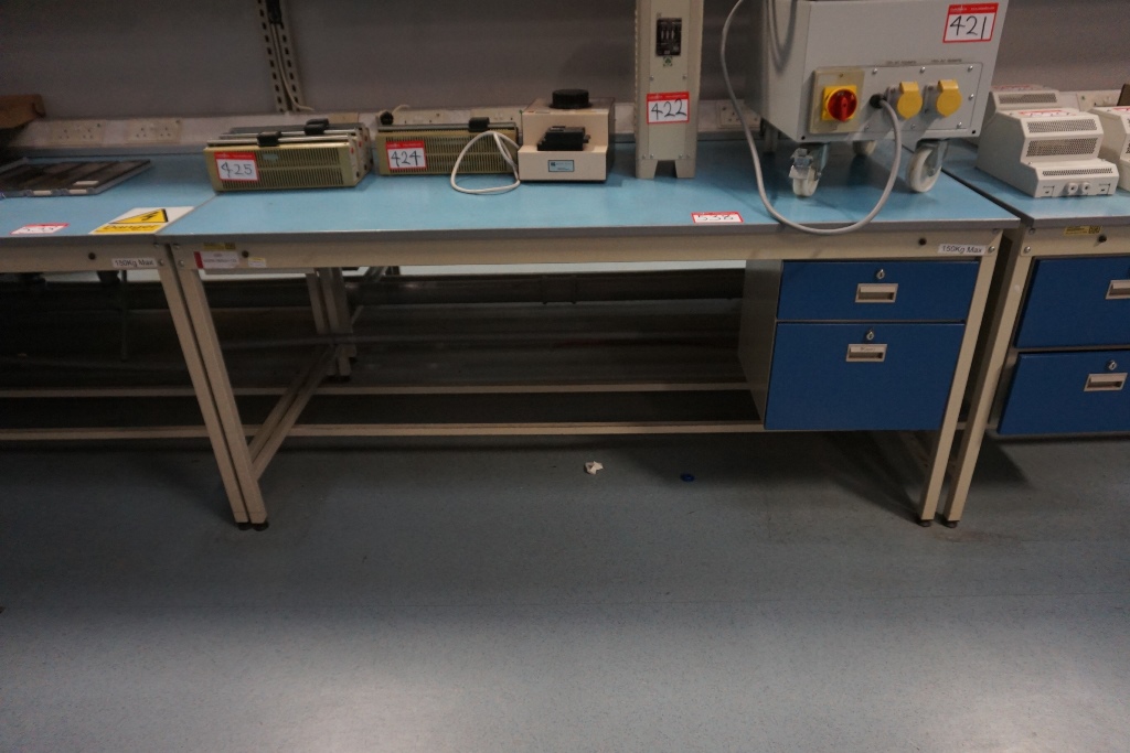 (2) Anti-static Work Benches 1.8m x 0.90m with 2 Drawers and Electric Sockets