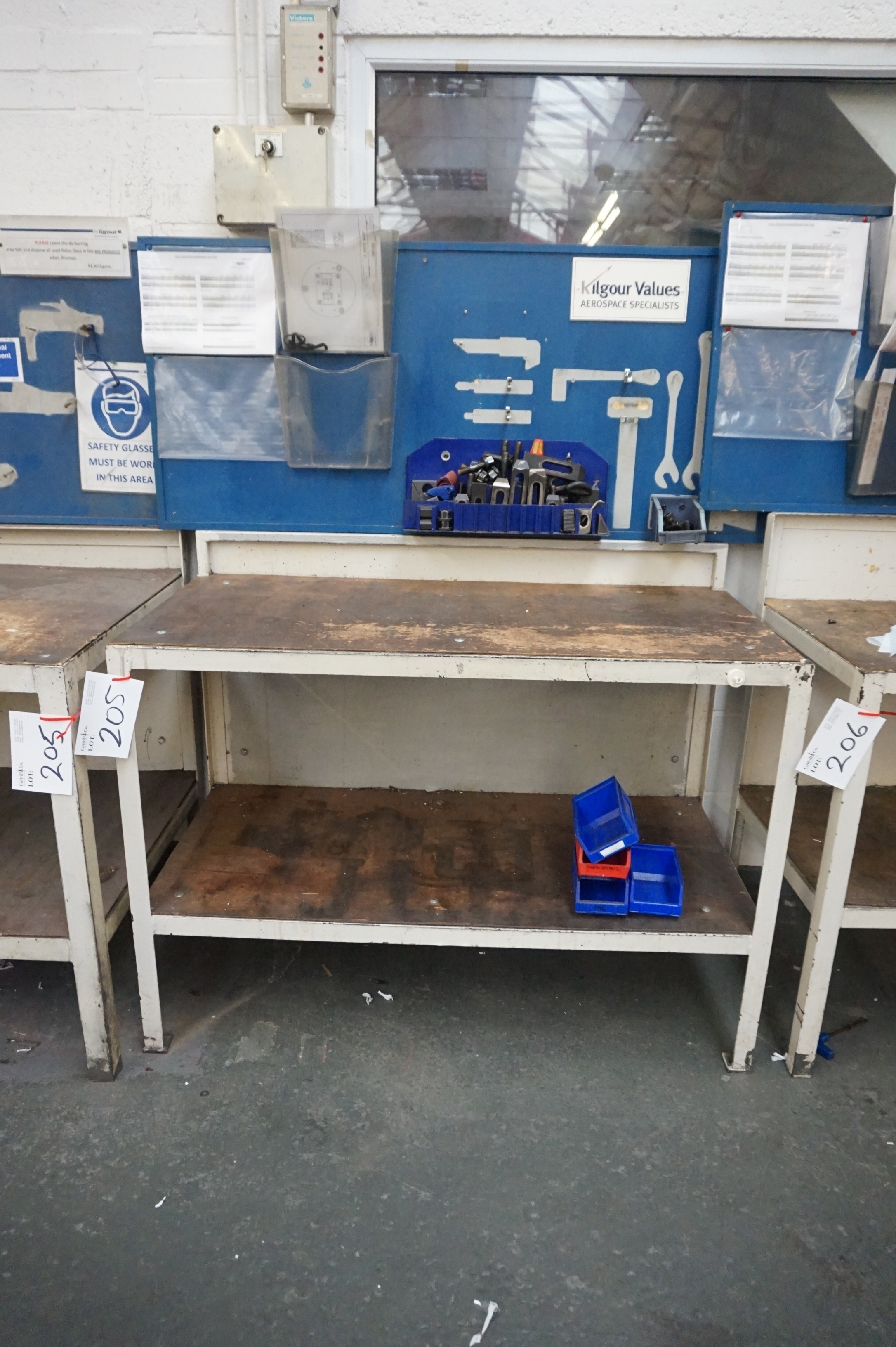 Lot 205: (2) Work Benches with Clamping Set 3ft x 30’’, 50’’ x 24’’