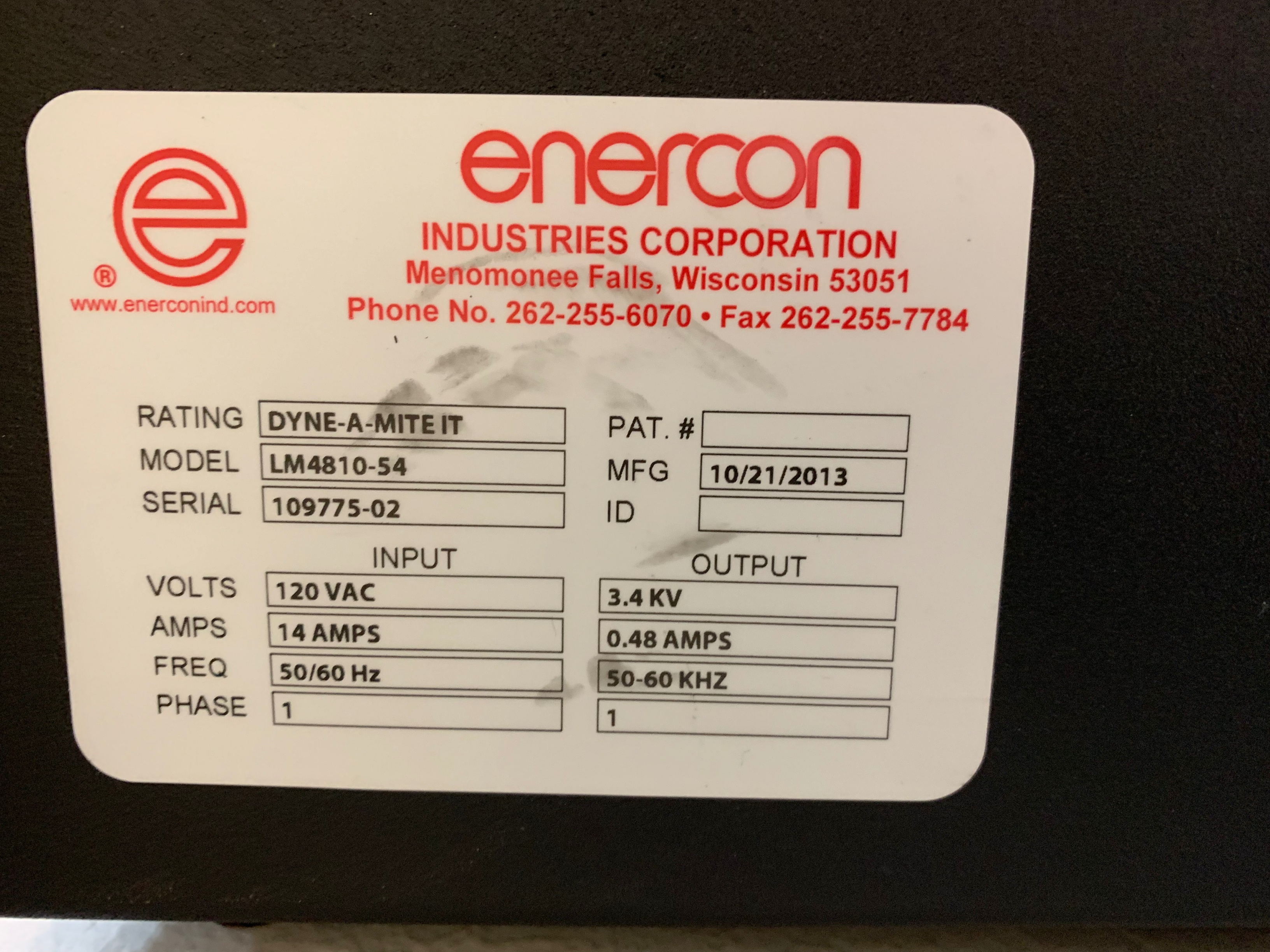 2013 ENERCON LM4810-S4 Dyna-A-Mite IT Atmospheric Plasma 3D Surface Treater, s/109775-02