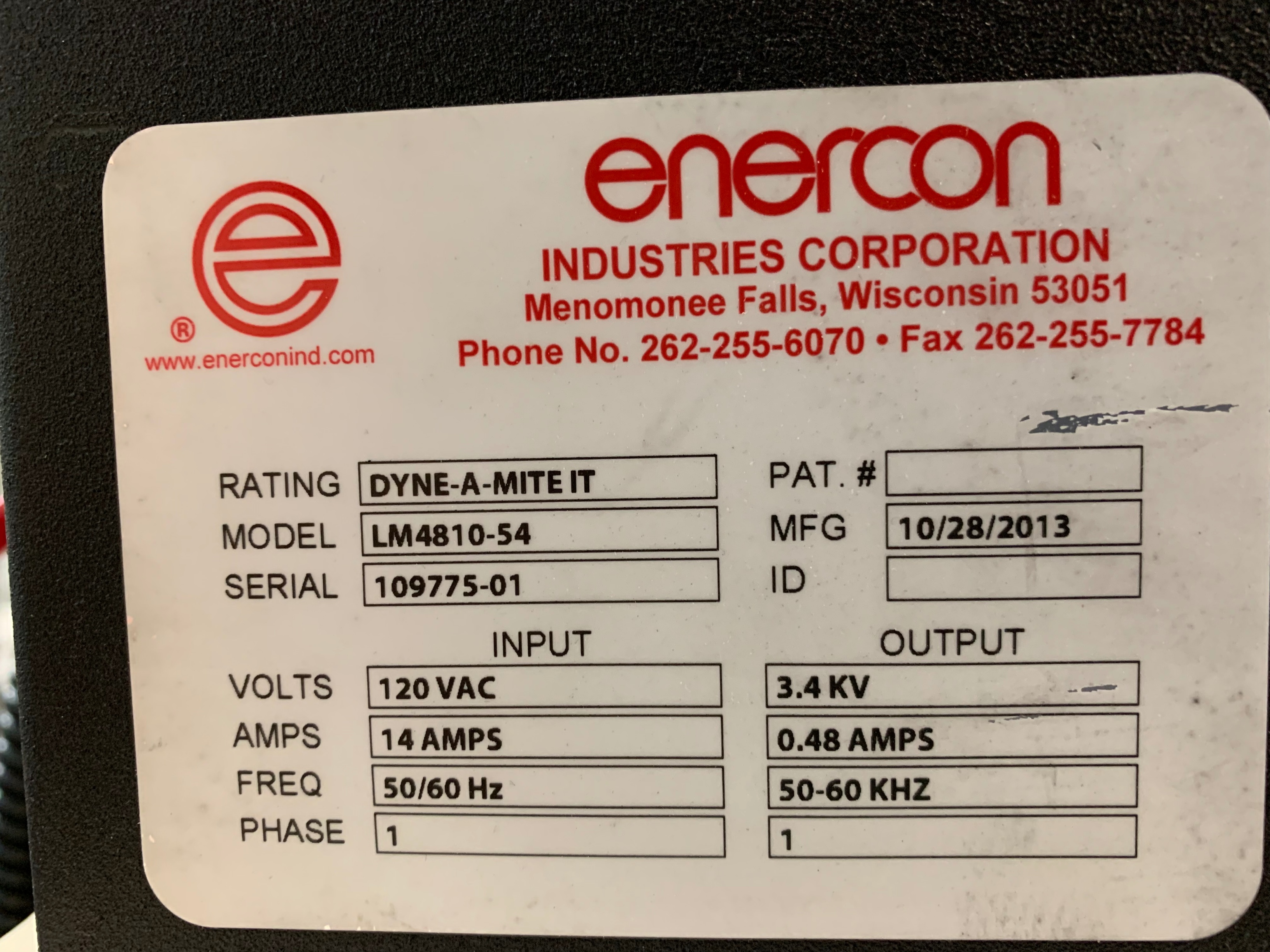 2013 ENERCON LM4810-S4 Dyna-A-Mite IT Atmospheric Plasma 3D Surface Treater, s/n 109775-01