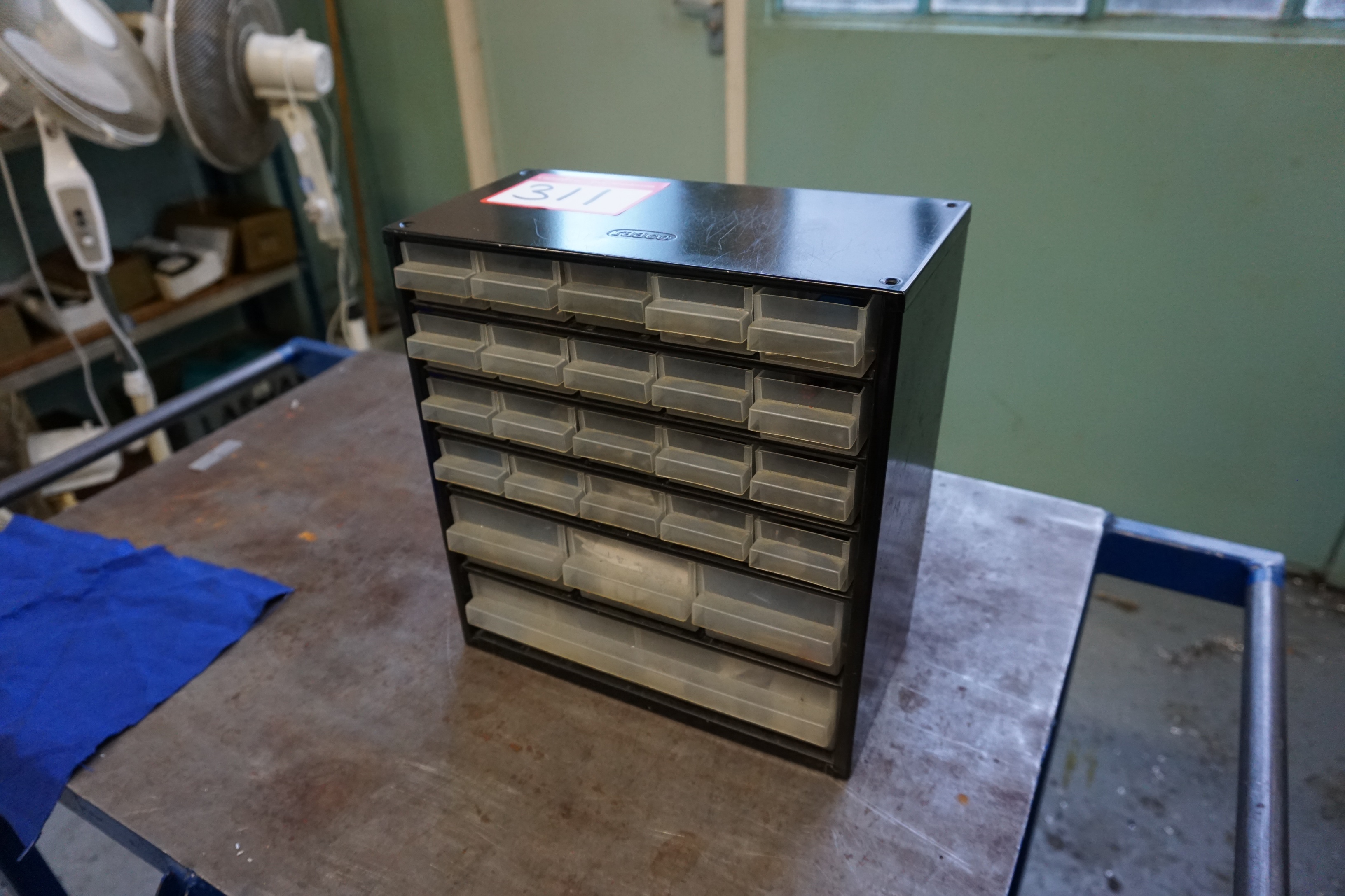 Lot 311: 24 Drawer Storage Cabinet with Qty of Drills