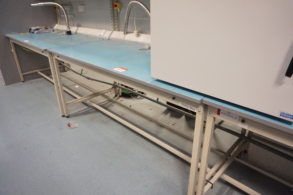 (4) Anti-static Work Benches (2) 1.8m x 0.90m with Electric Sockets (2) 1.8m x 0.90m
