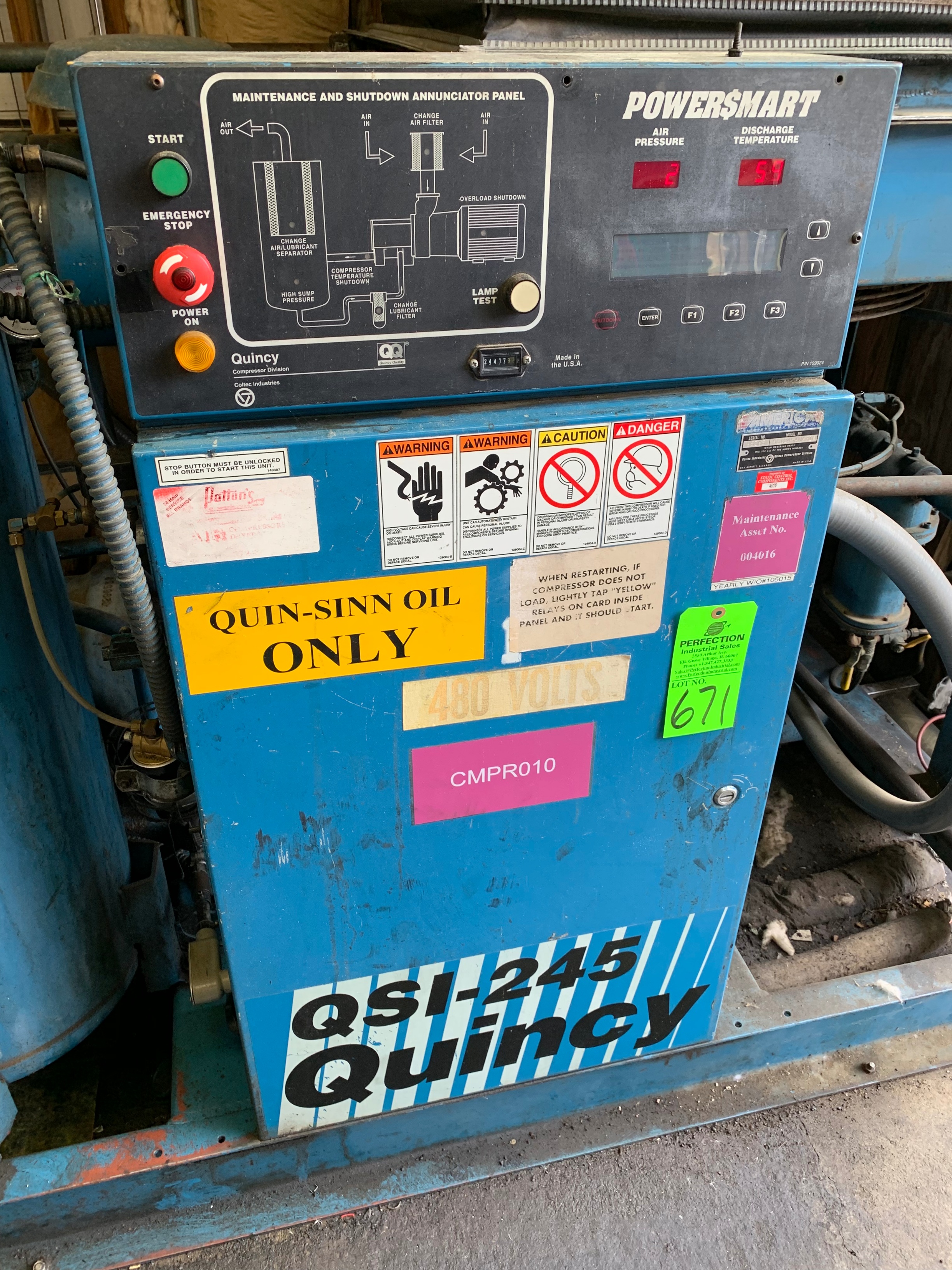 Lot 671: 50 HP Quincy QSI-245 Air Compressor