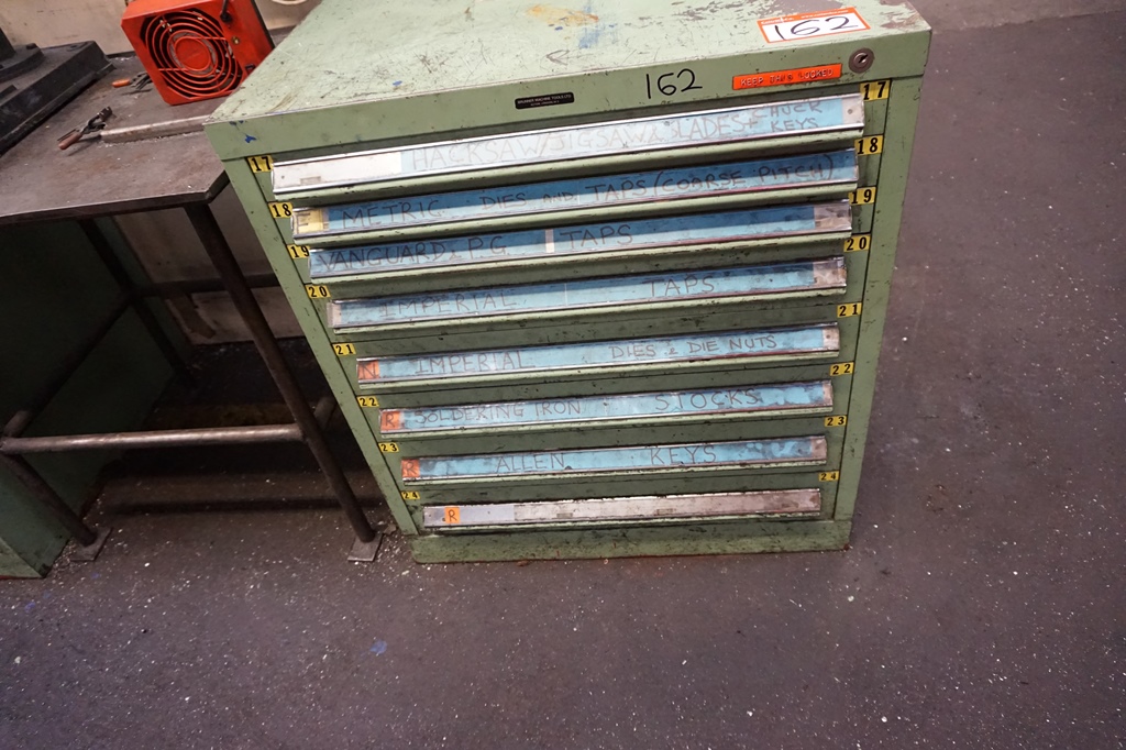 Lot 162: 8-Draw Cabinet including Dies, Taps & Drills