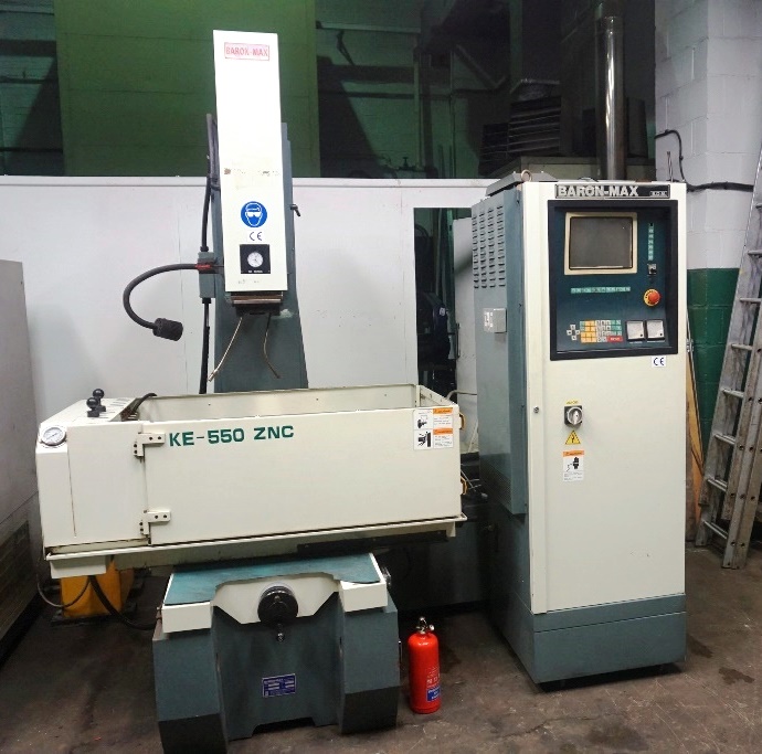 Baron-Max KE-550 ZNC Manual ZNC EDM Machine, Axis Travel X, Y, Z 550 x 350 x 250mm, Work Table 800mm x 450mm, Work Tank Dimensions 1170mm x 690mm x 425mm, ZNC Control with 3 Axis Display, Programmable Z Axis with Depth Stop Function, 50A Generator, Low Volt Work Lamp. S/No.0699386 (1997)