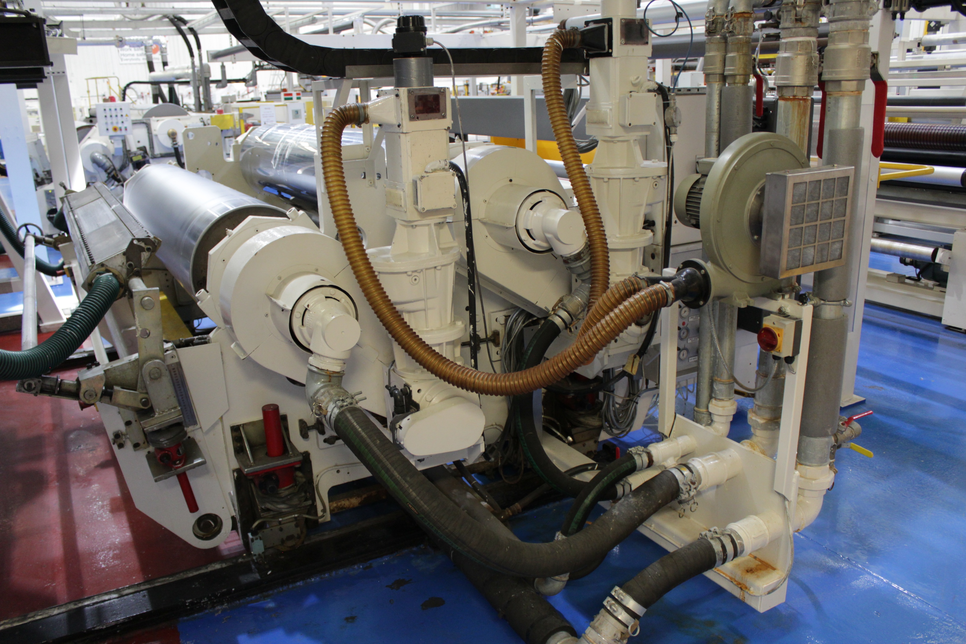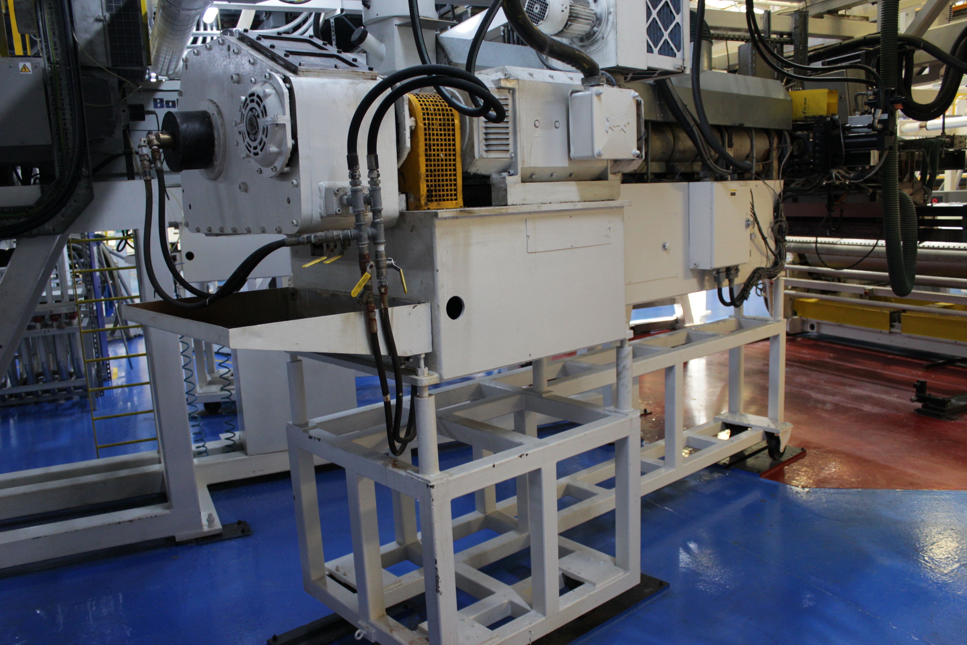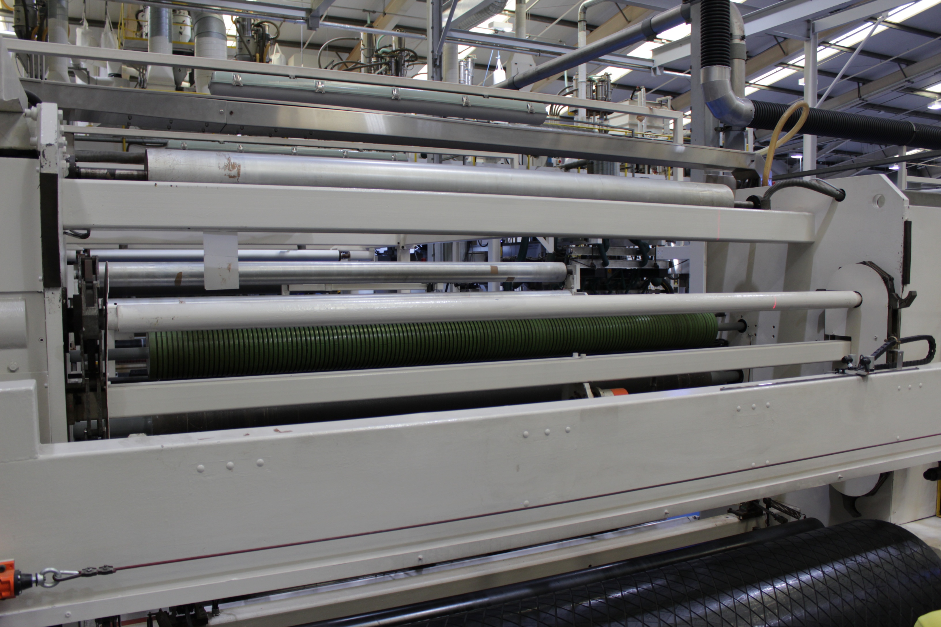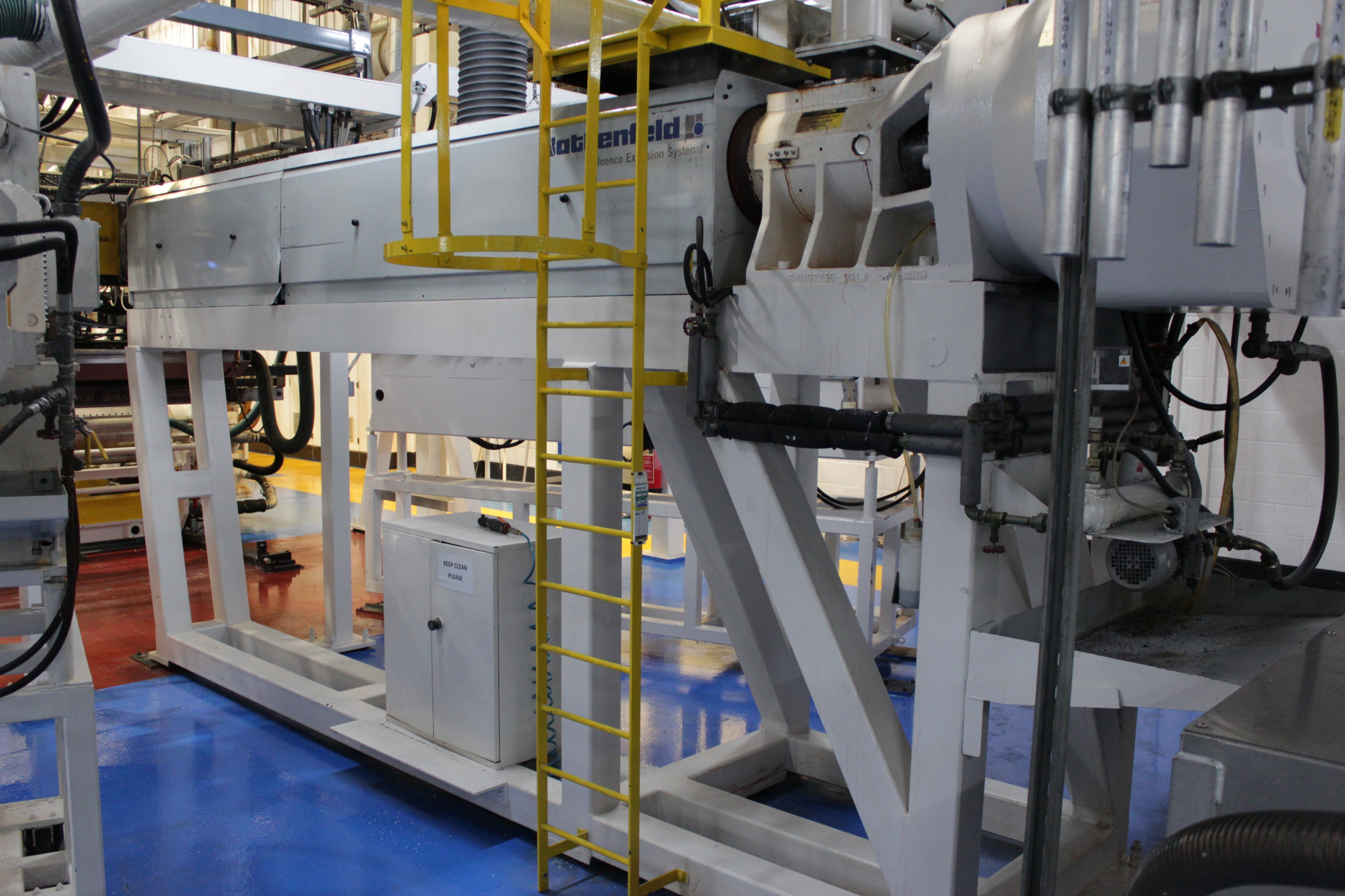 Battenfeld Gloenco 5-Layer PP & PE Cast Film Extrusion Line (1986 - 2010) 20µm - 600µm, Max Output 400kg/h, Die Width 2300mm, Finished Width 2000mm, 'A' Extruder 150mm dia, 30:1 LD Twin Helix, 6-Zone, with Hydreclaim 6 Component Continuous Blender with Re-Trim Feed, 'B' & 'C' Extruders 90mm dia, 30:1 LD Twin Helix with Madox Mixing, 5-Zone, Maguire 4 Component Gravimetric Batch Blenders, Cloreren Epoch Design Die & Feedblock with Temperature Controlled Deckles, 3 x Dynisco Screen Changers Installed 2018, Excelsior Cast Line Control System, Twin-Roll Cast/Cooling x 500mm dia Section, Thermofisher L400 Scanning Frame Installed 2017, Sherman Double Sided Corona Discharge Treater, Herbold Granulator, Wintech Indexing Turret Winder, 3 x 6", 3 x 3" dia Rewind Shafts, Hydraulic Core Puller, Chilled Water Tank/Pumping Station, Dust Collection.
