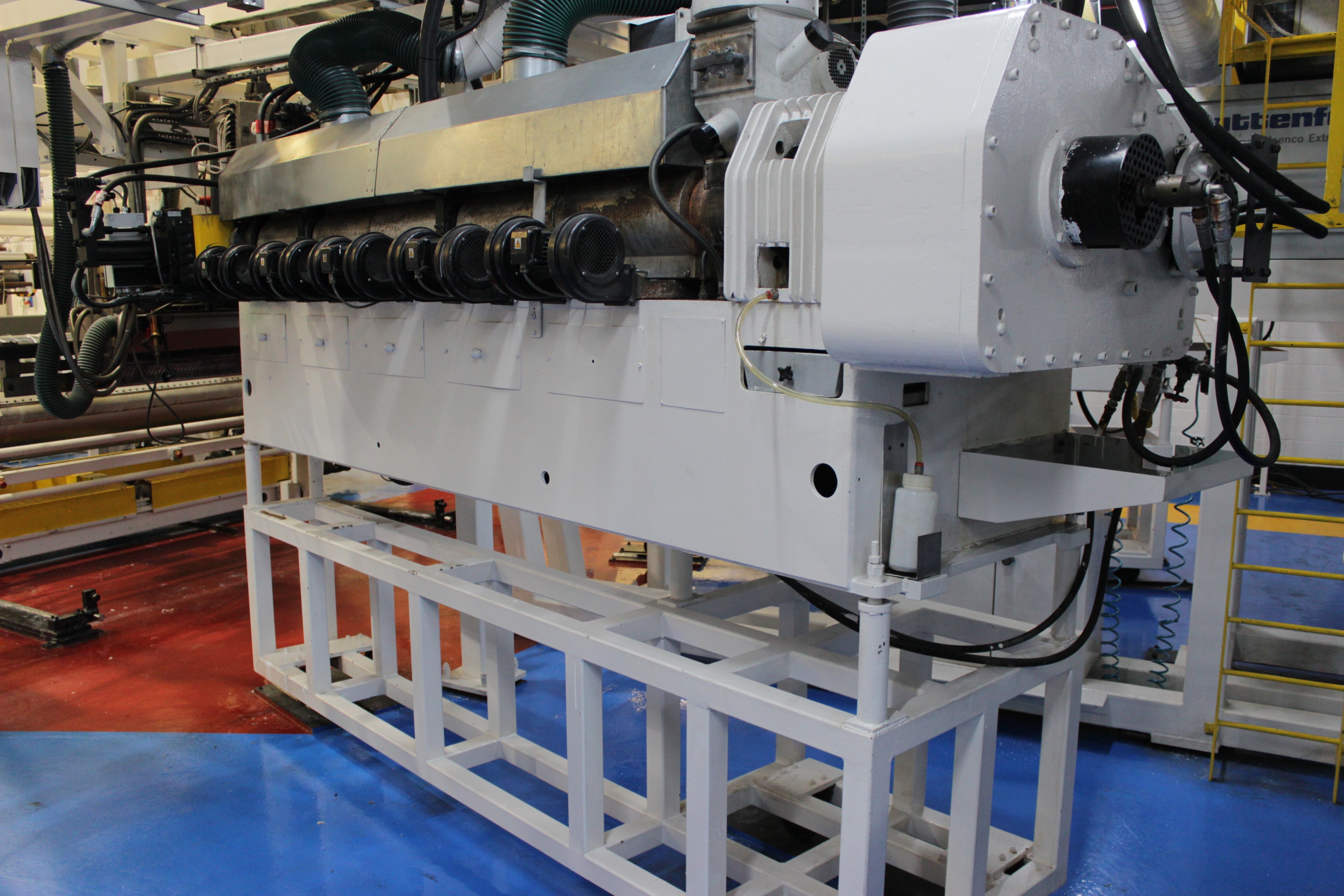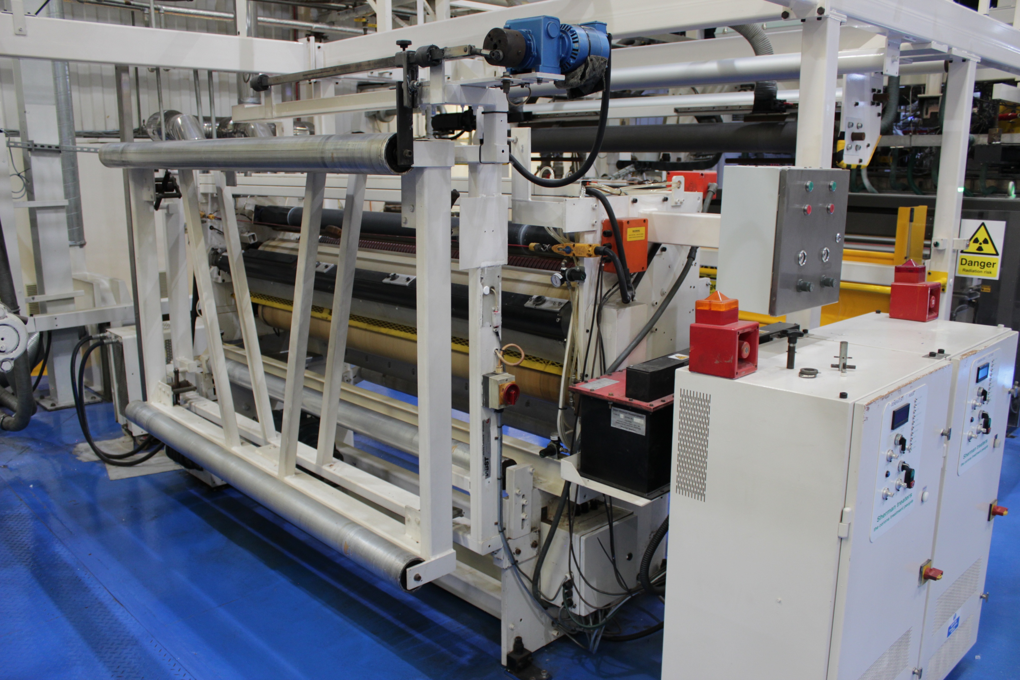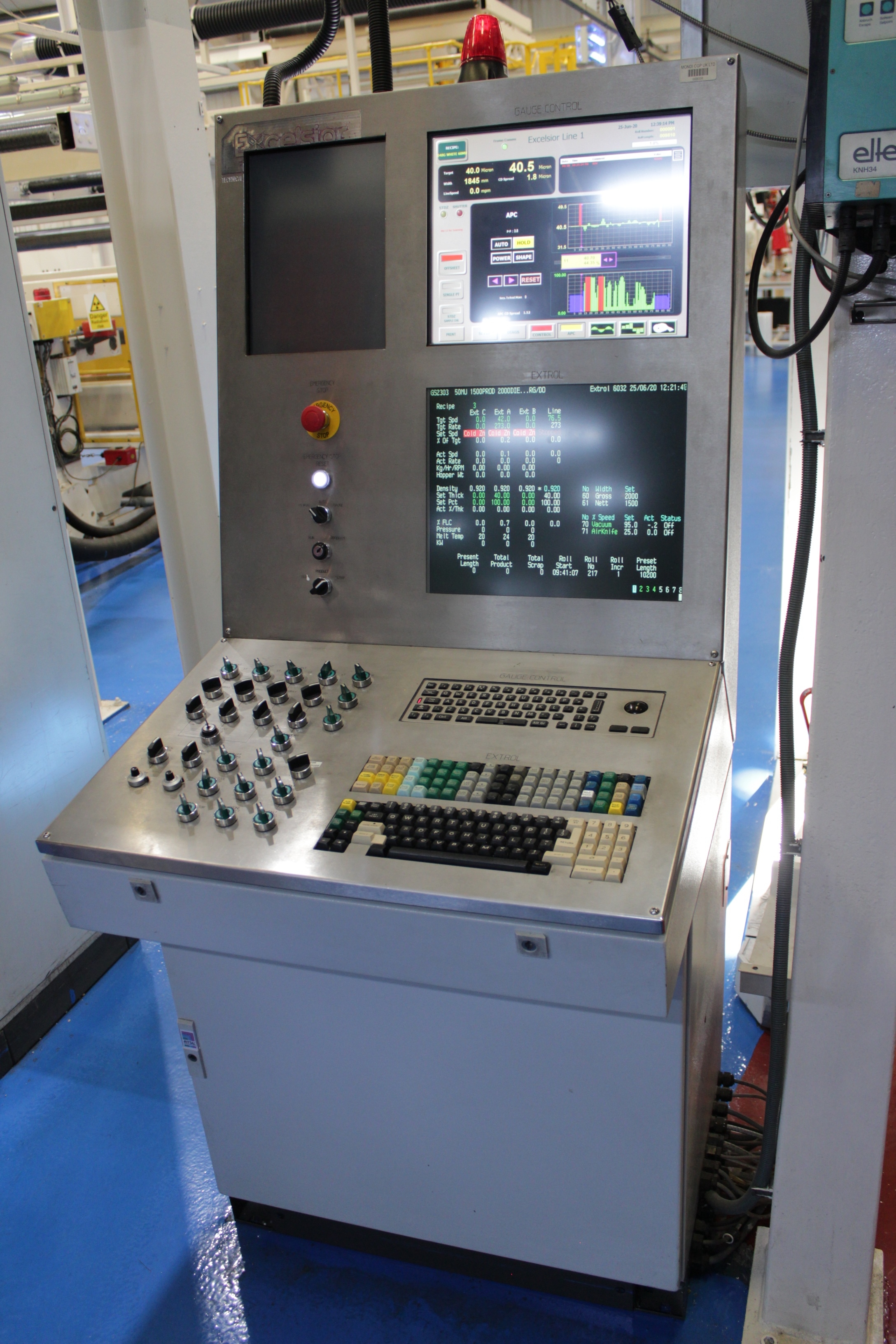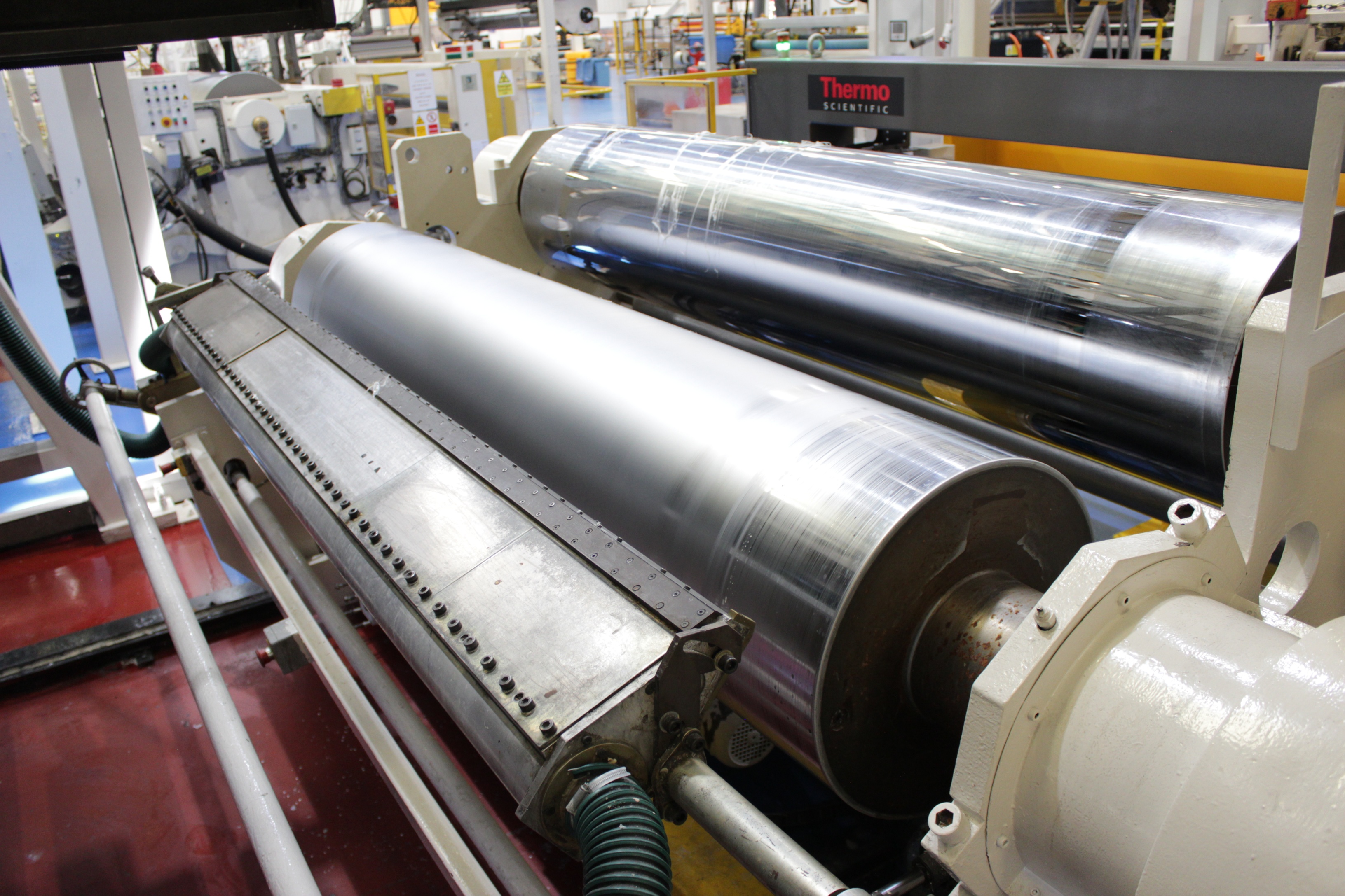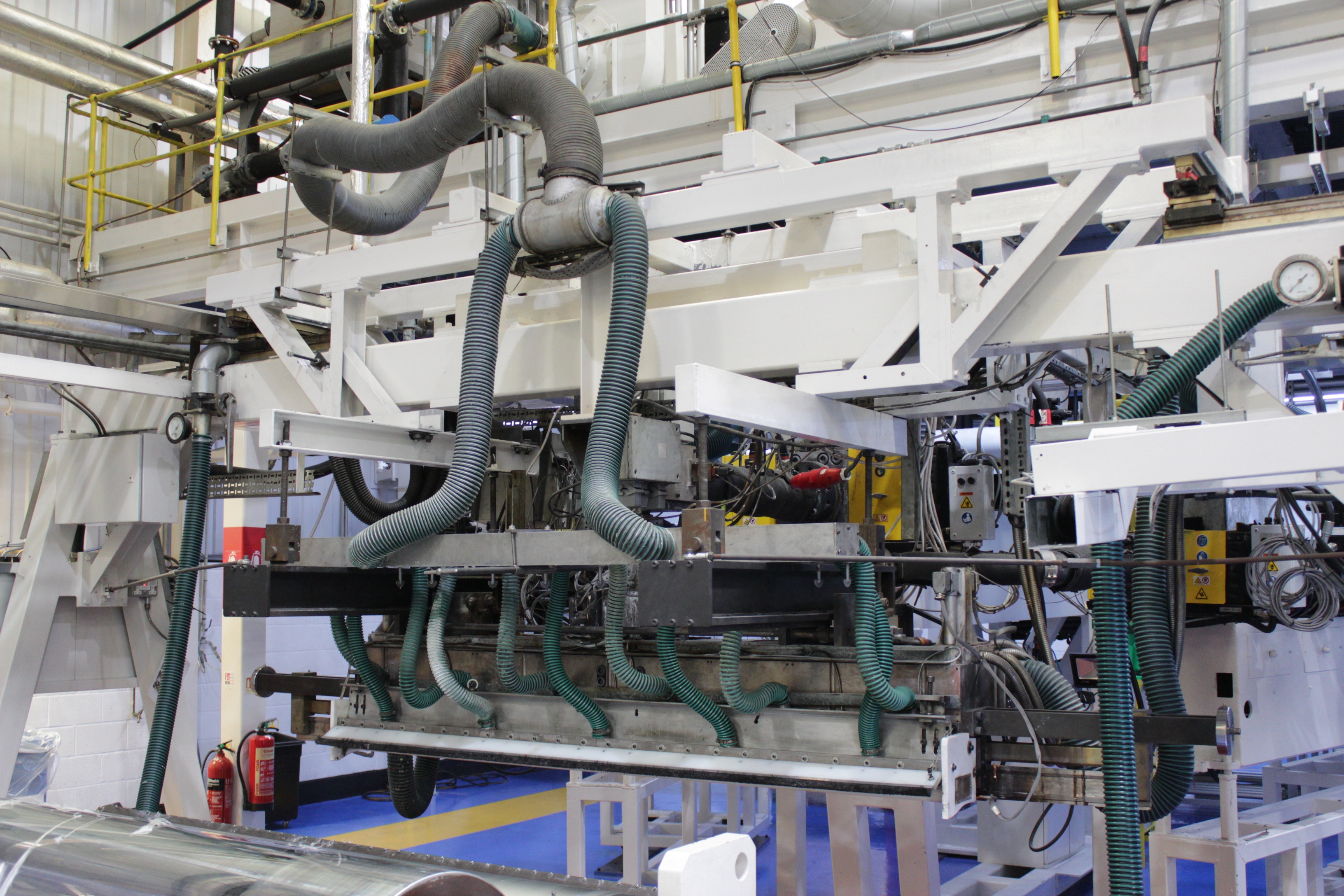 Battenfeld Gloenco 5-Layer PP & PE Cast Film Extrusion Line (1986 - 2010) 20µm - 600µm, Max Output 400kg/h, Die Width 2300mm, Finished Width 2000mm, 'A' Extruder 150mm dia, 30:1 LD Twin Helix, 6-Zone, with Hydreclaim 6 Component Continuous Blender with Re-Trim Feed, 'B' & 'C' Extruders 90mm dia, 30:1 LD Twin Helix with Madox Mixing, 5-Zone, Maguire 4 Component Gravimetric Batch Blenders, Cloreren Epoch Design Die & Feedblock with Temperature Controlled Deckles, 3 x Dynisco Screen Changers Installed 2018, Excelsior Cast Line Control System, Twin-Roll Cast/Cooling x 500mm dia Section, Thermofisher L400 Scanning Frame Installed 2017, Sherman Double Sided Corona Discharge Treater, Herbold Granulator, Wintech Indexing Turret Winder, 3 x 6", 3 x 3" dia Rewind Shafts, Hydraulic Core Puller, Chilled Water Tank/Pumping Station, Dust Collection.