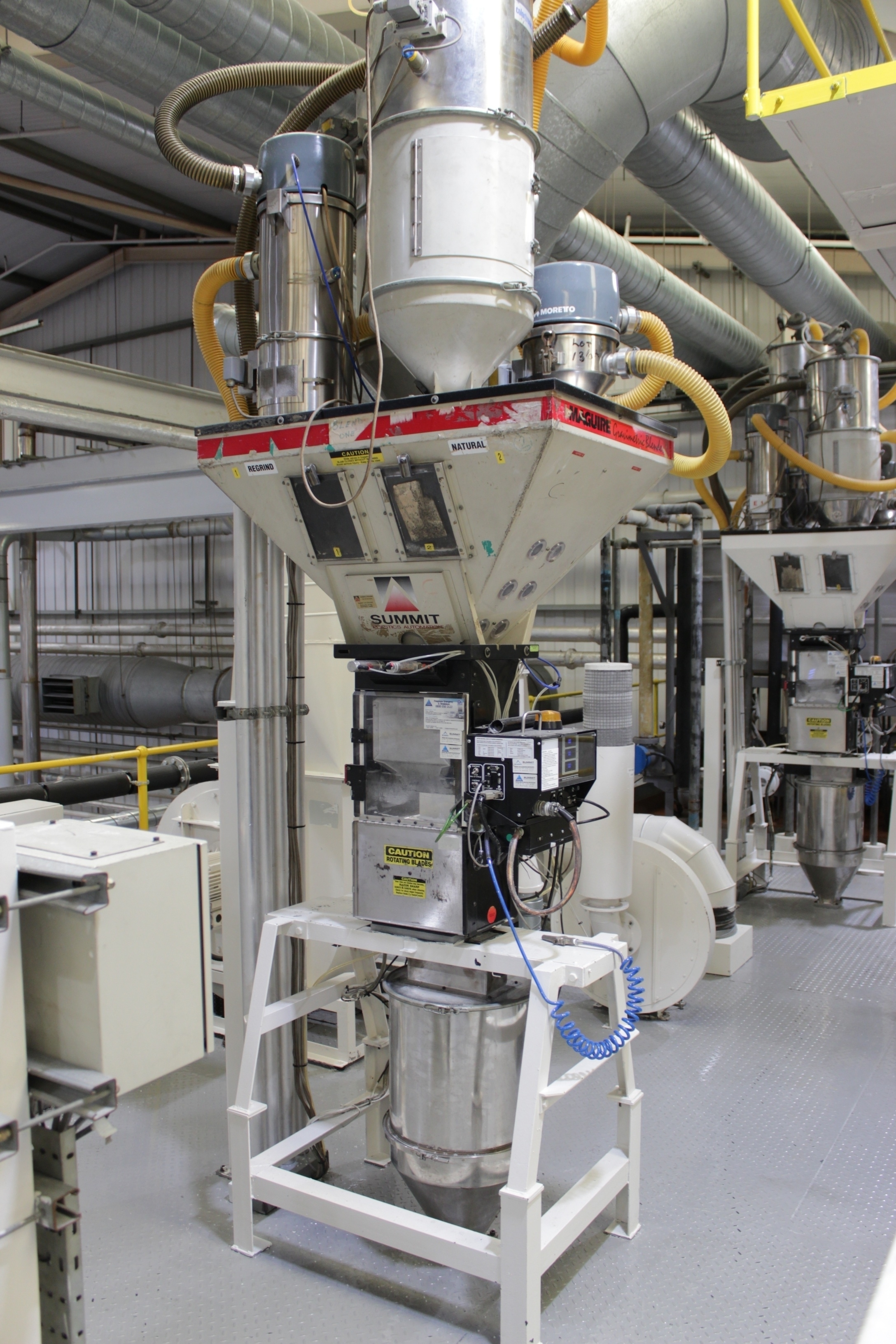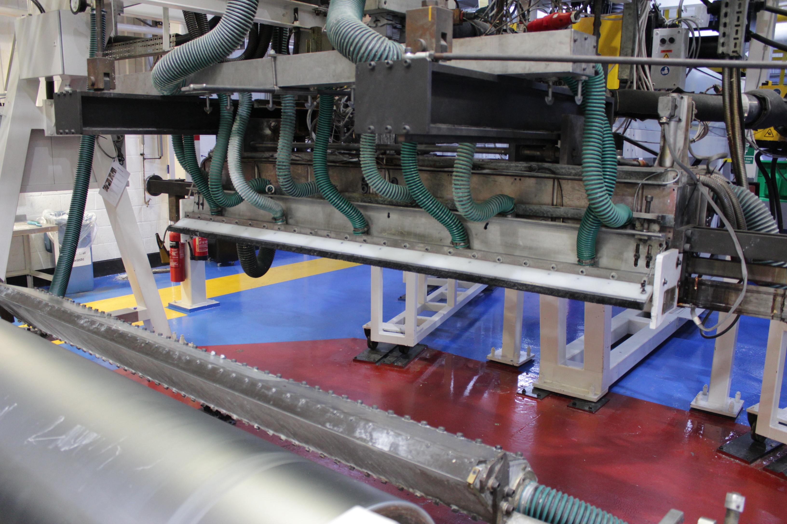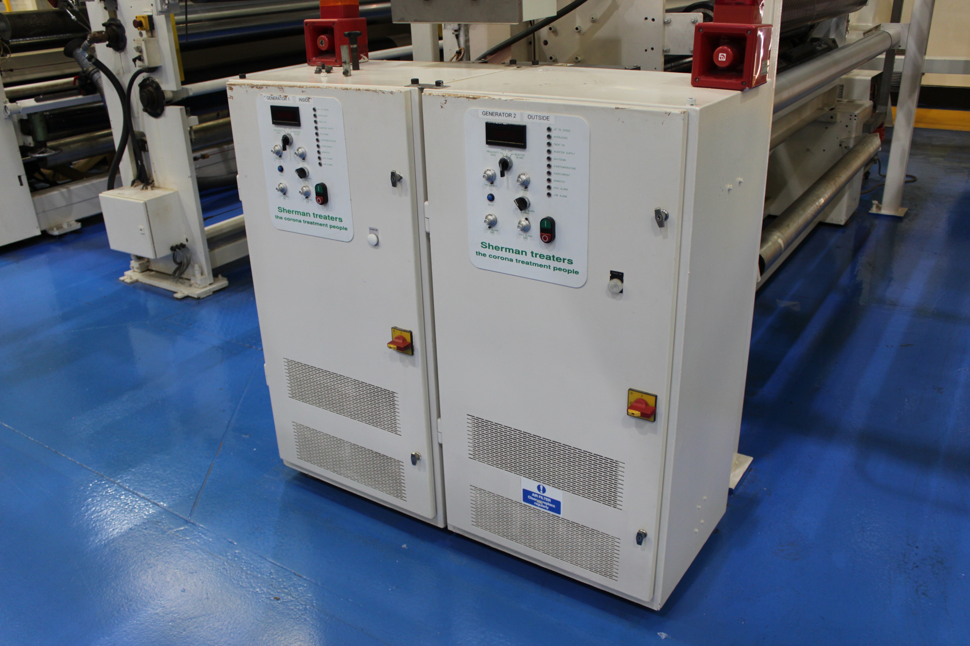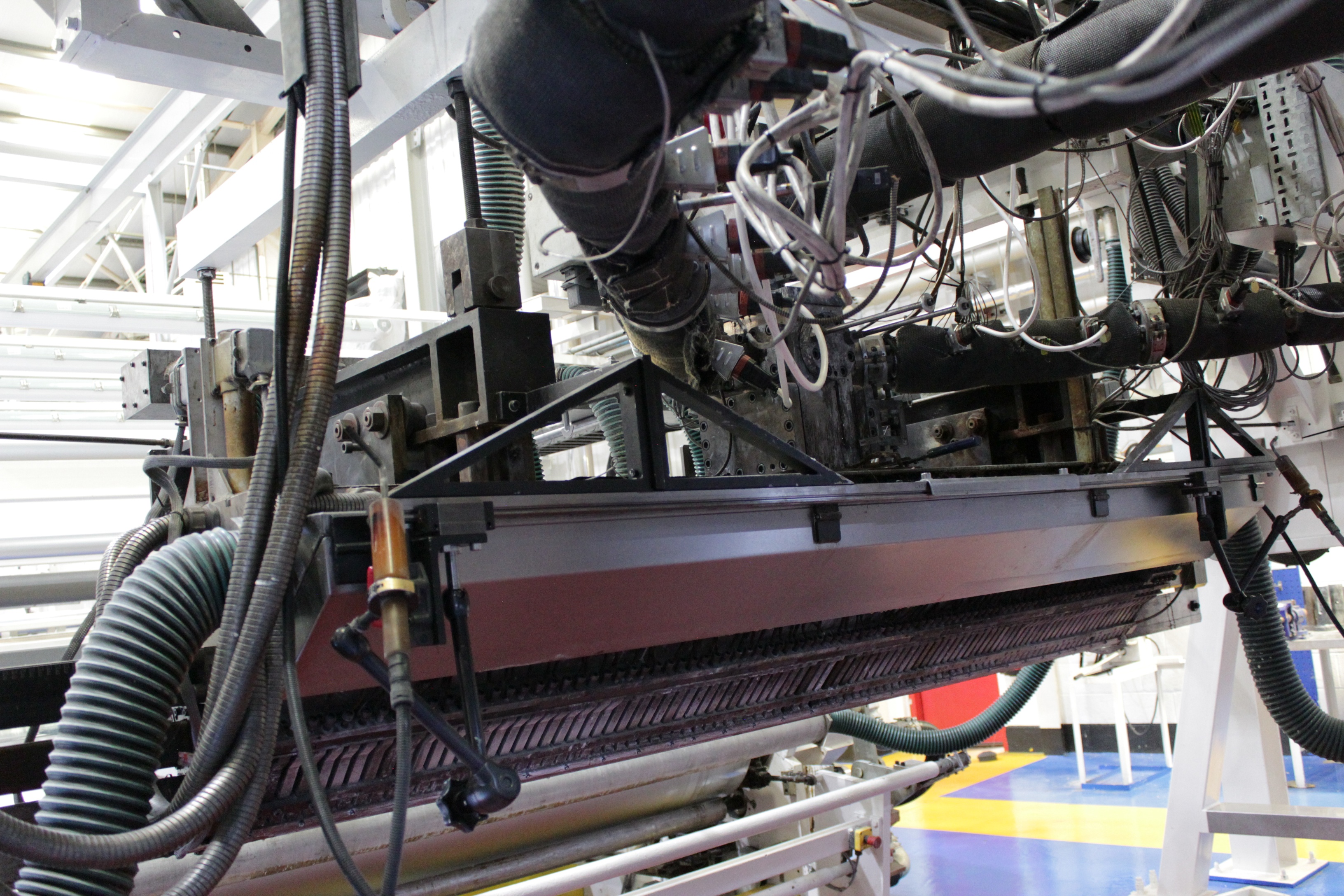 Battenfeld Gloenco 5-Layer PP & PE Cast Film Extrusion Line (1986 - 2010) 20µm - 600µm, Max Output 400kg/h, Die Width 2300mm, Finished Width 2000mm, 'A' Extruder 150mm dia, 30:1 LD Twin Helix, 6-Zone, with Hydreclaim 6 Component Continuous Blender with Re-Trim Feed, 'B' & 'C' Extruders 90mm dia, 30:1 LD Twin Helix with Madox Mixing, 5-Zone, Maguire 4 Component Gravimetric Batch Blenders, Cloreren Epoch Design Die & Feedblock with Temperature Controlled Deckles, 3 x Dynisco Screen Changers Installed 2018, Excelsior Cast Line Control System, Twin-Roll Cast/Cooling x 500mm dia Section, Thermofisher L400 Scanning Frame Installed 2017, Sherman Double Sided Corona Discharge Treater, Herbold Granulator, Wintech Indexing Turret Winder, 3 x 6", 3 x 3" dia Rewind Shafts, Hydraulic Core Puller, Chilled Water Tank/Pumping Station, Dust Collection.