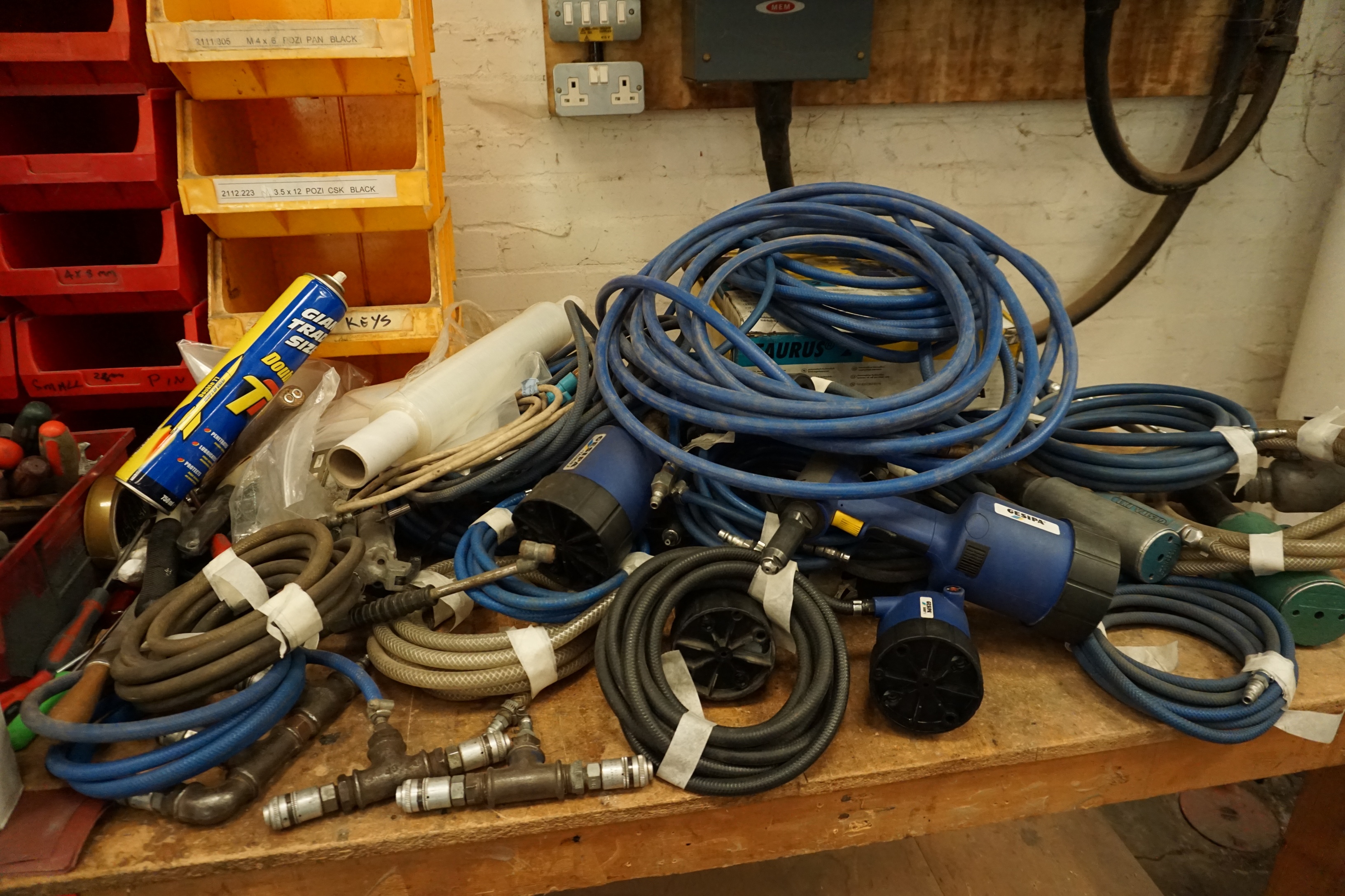 Lot 276: Bench with Qty of Pop Riviters & Air Tools