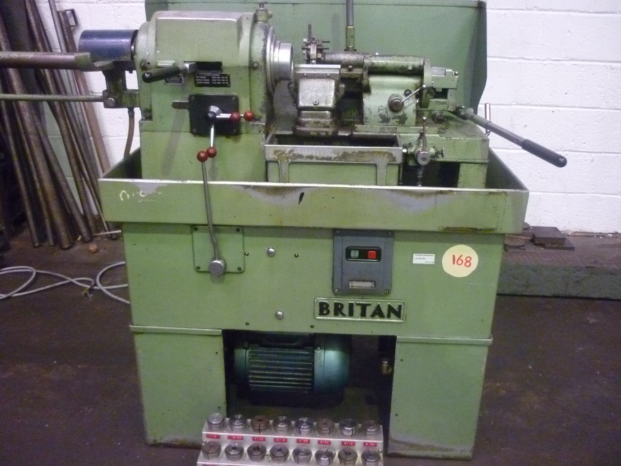 Britan Capstan Lathe with Bar Feed & Collets. Country of Origin: United Kingdom.