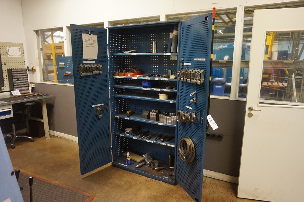 Cabinet with Morse Taper Drill Holders, Carbide Tip Holders, Drills and Centres