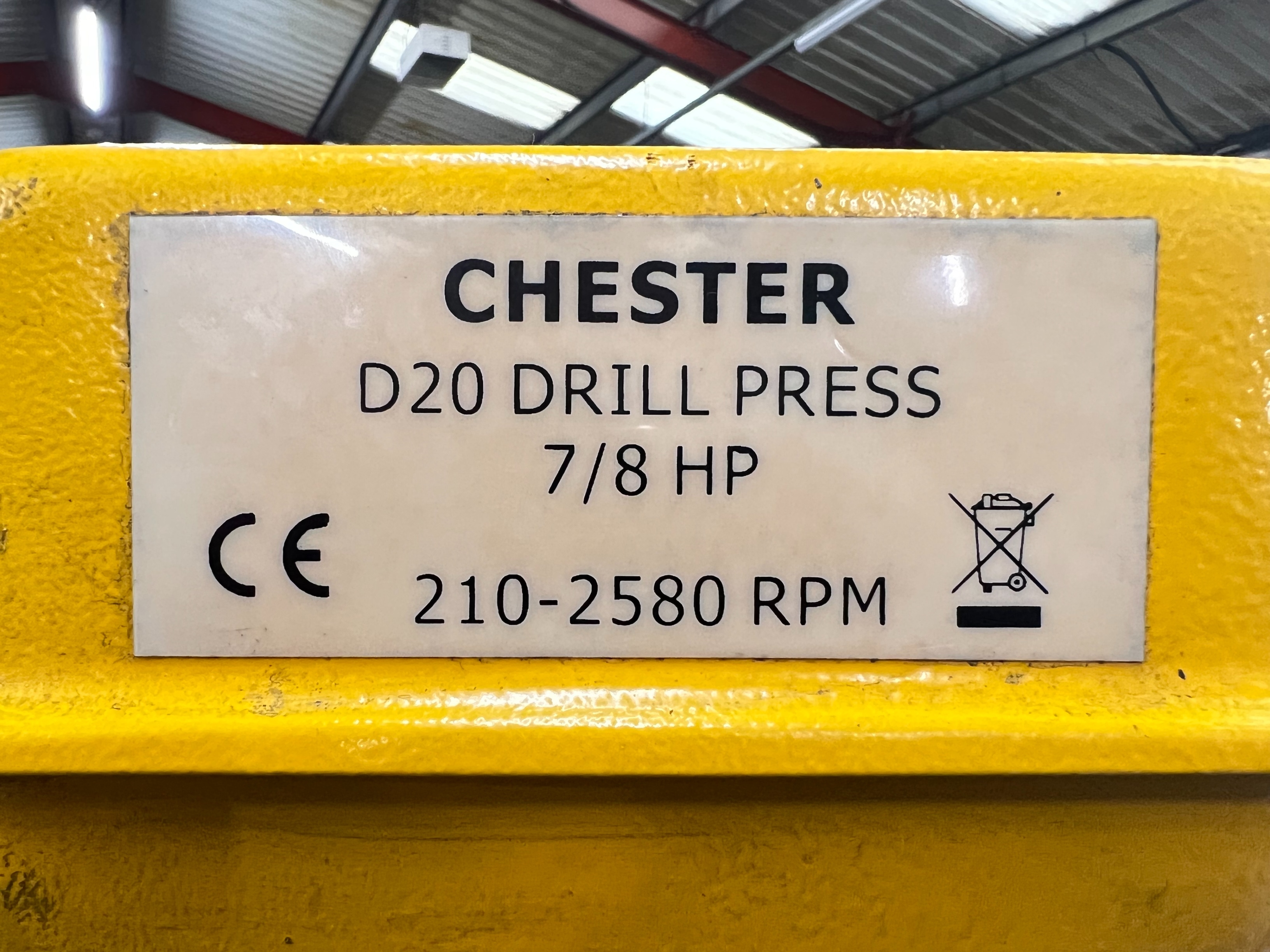 Chester D20 Drill Press Pillar Drill, 7/8 hp, Spindle Speeds 210-2580rpm, Rise & Fall Table