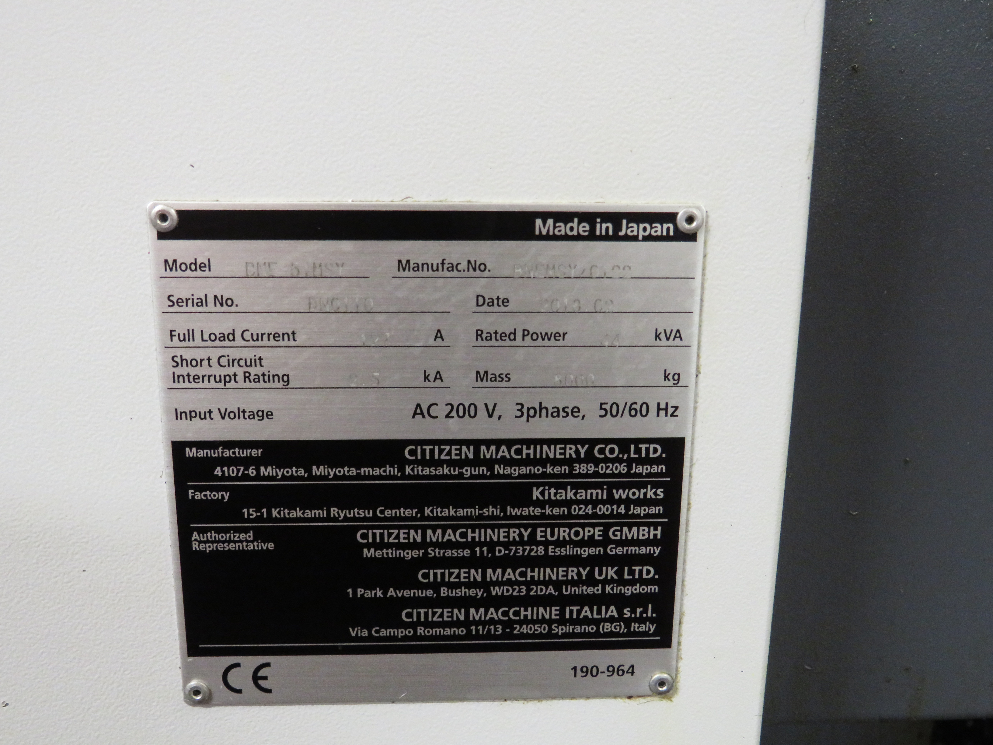 Lot 1: Citizen Miyano BNE51MSY 9-Axis CNC Turning Centre
