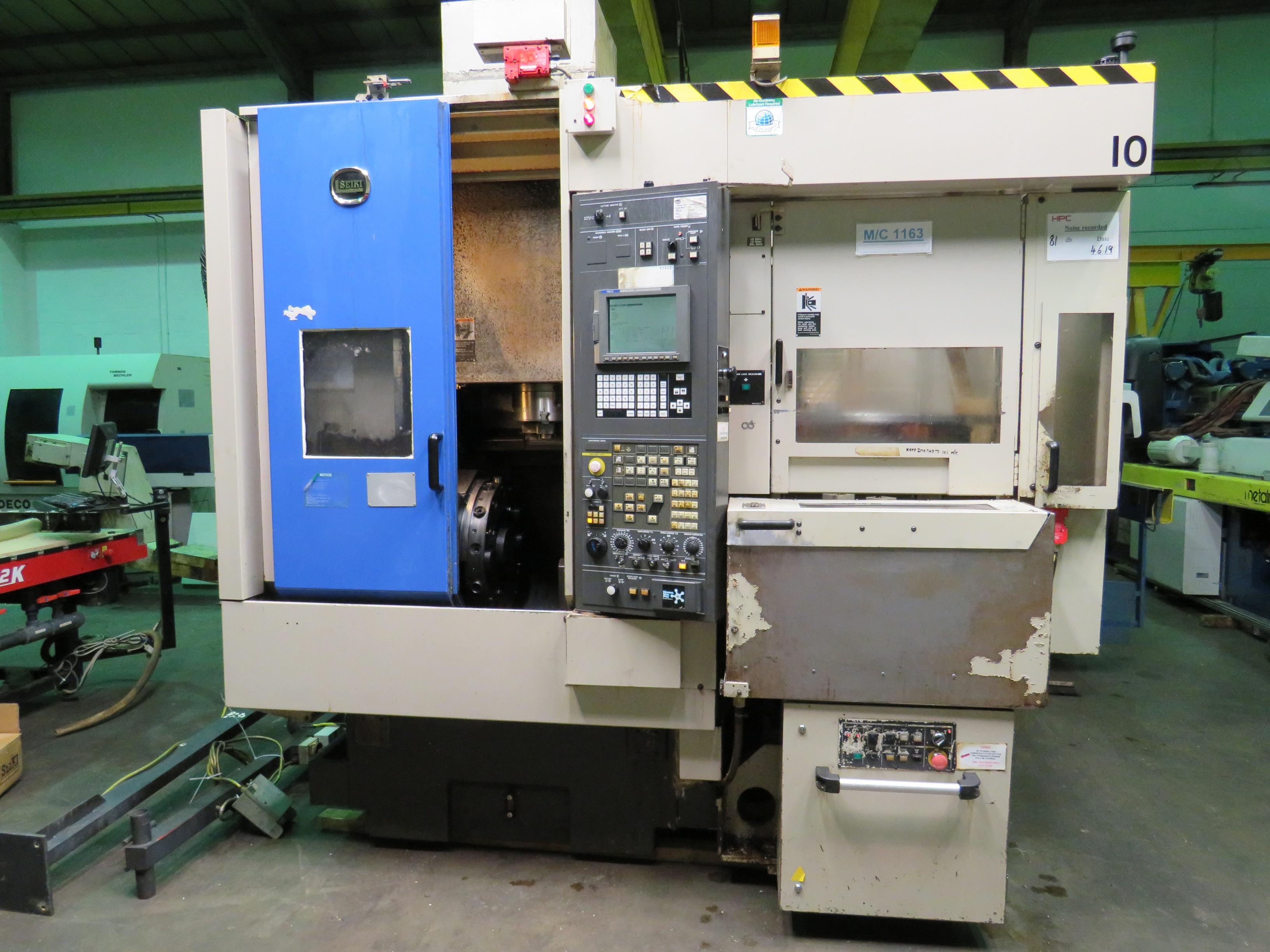 100 - Hitachi Seiki CS25Y CNC Vertical Lathe with Seicos Control, 260mm 3 Jaw Chuck, 12 Station Turret, 8 Station Pallet Changer, Swarf Conveyor, VDI Tooling, Live Tooling. S/No. CSY20028 (2002)