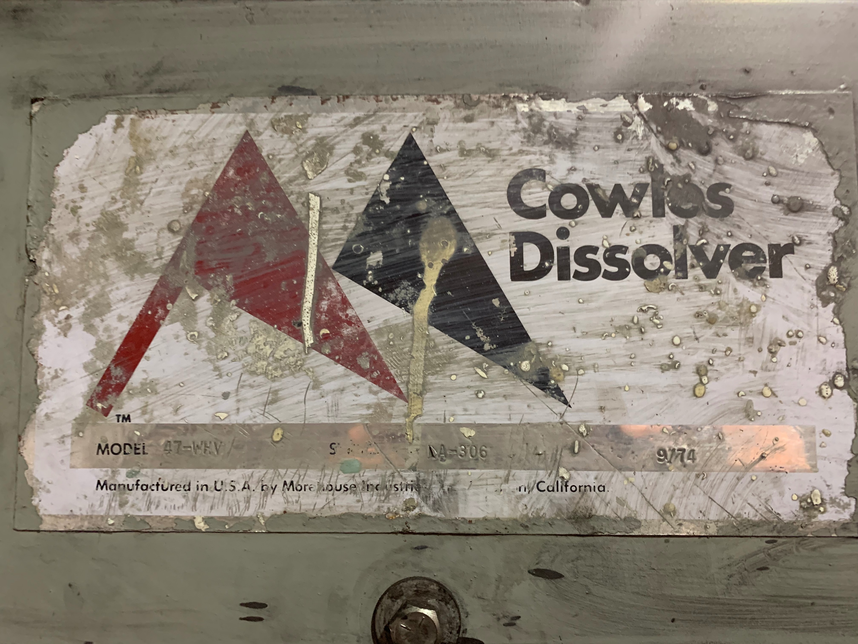 COWLES DISSOLVER 47-WHV Mixer, s/n LA-306