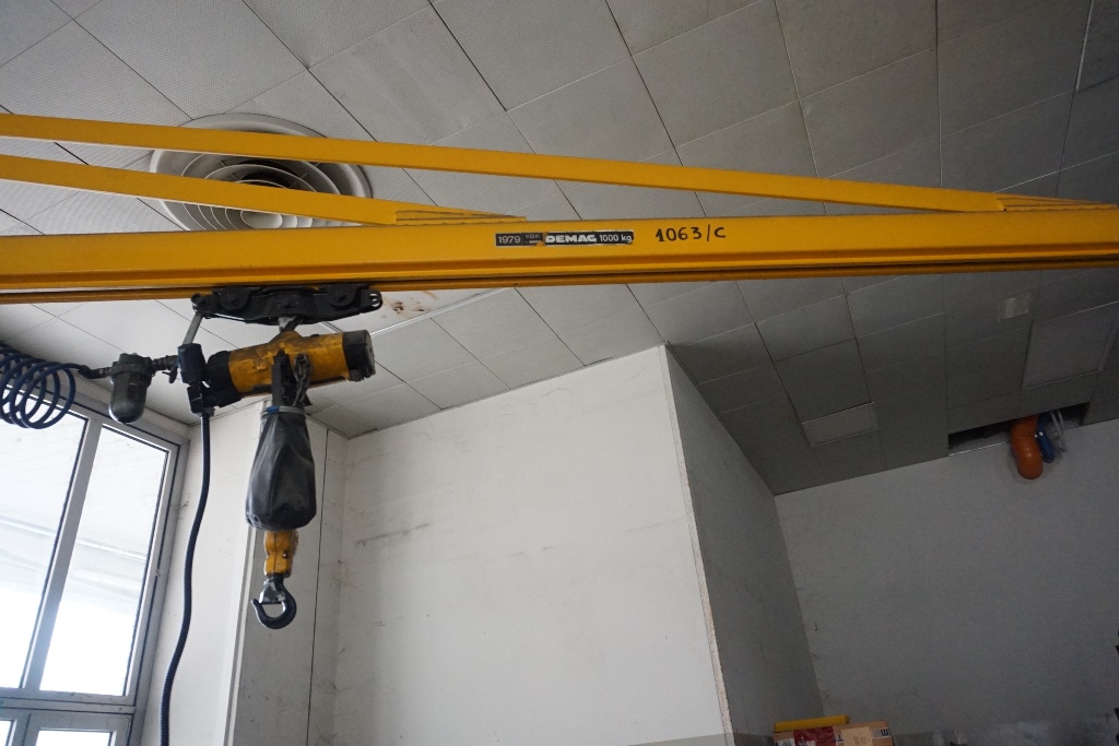 Lot 431: Demag 6m Swing Jib Hoist with Electric 1000kg hoist
