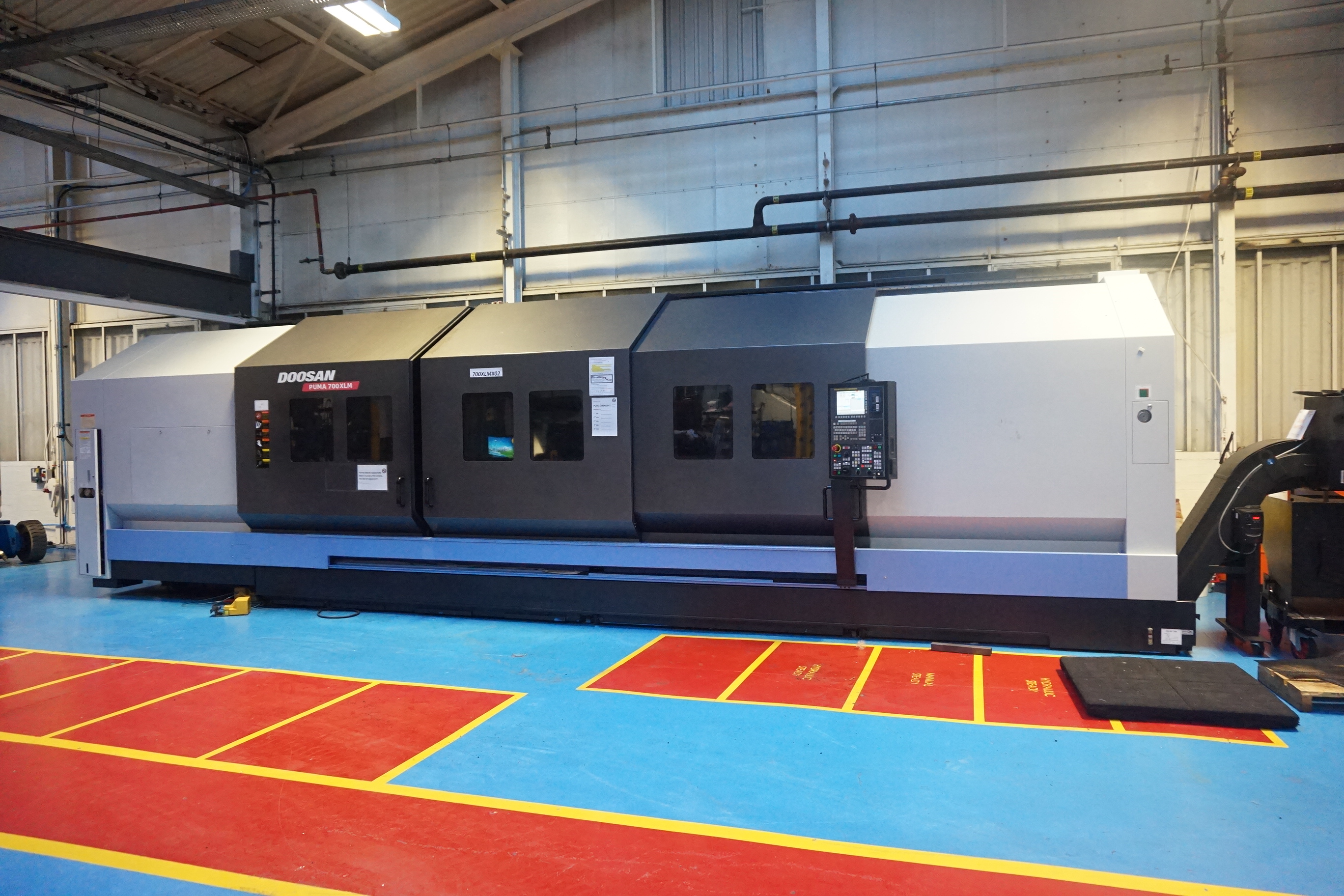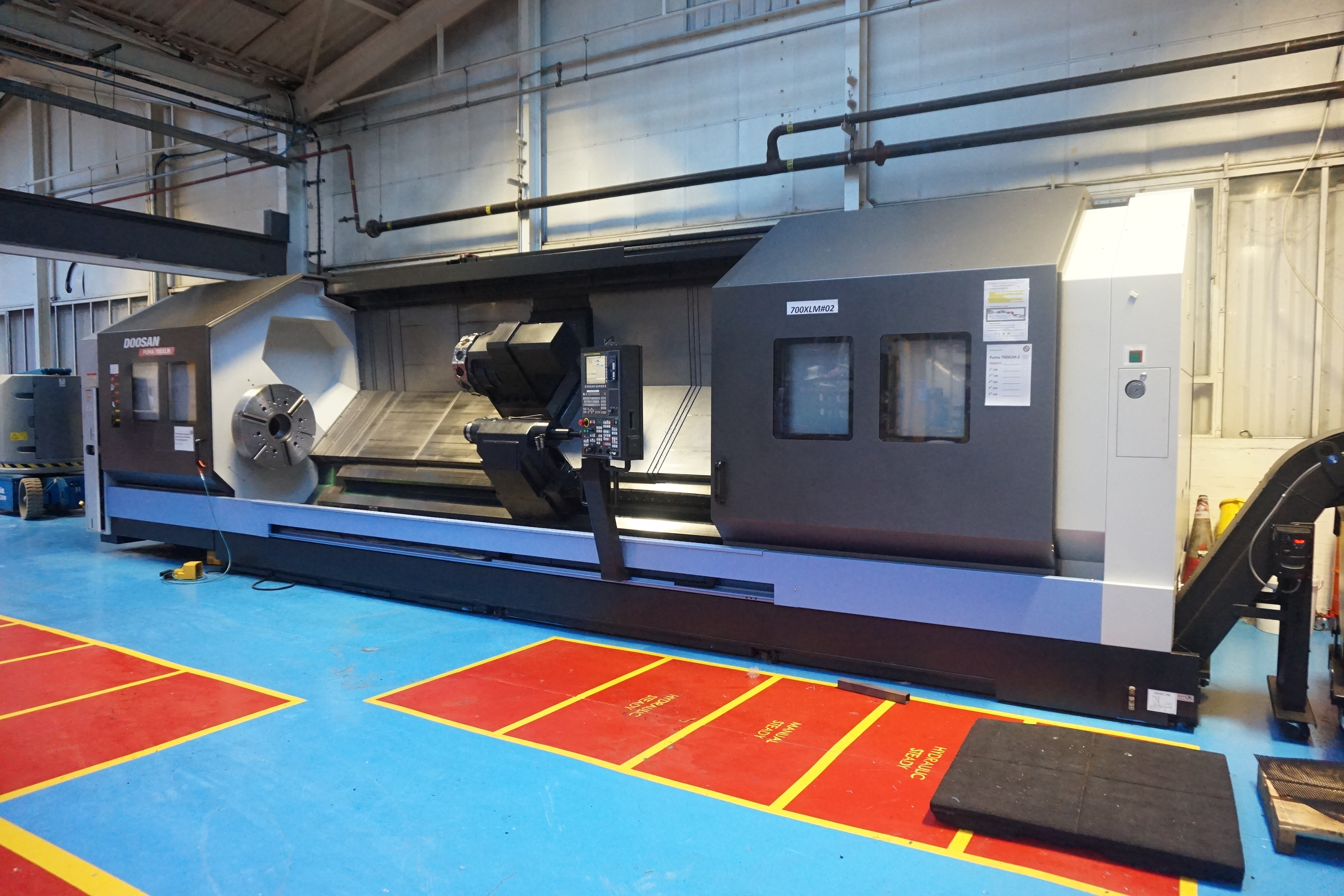 Doosan Puma 700 XLM CNC Turning Centre, 5m between Centres, X, Z Axes, 32" Chuck, 800mm 4-Jaw Chuck, Tooleye, Swarf Conveyor. S/No. ML0167-000051 (12/2013)
