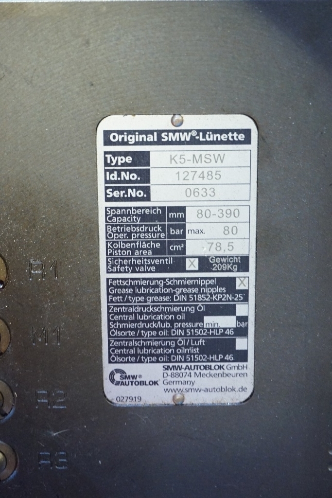Tooling included with the sale of this machine; 1 x K5-MSW Hydraulic Steady - Range; 80 - 390. S/No. 0633, 1 x K5-MSW Hydraulic Steady - Range; 80 - 390. S/No. 0647, 1 x Telbrook T-12063 Steady - Range; 390 - 700, 2 x Live Tooling, Qty Standard Tooling & 2 x Sets of Jaws