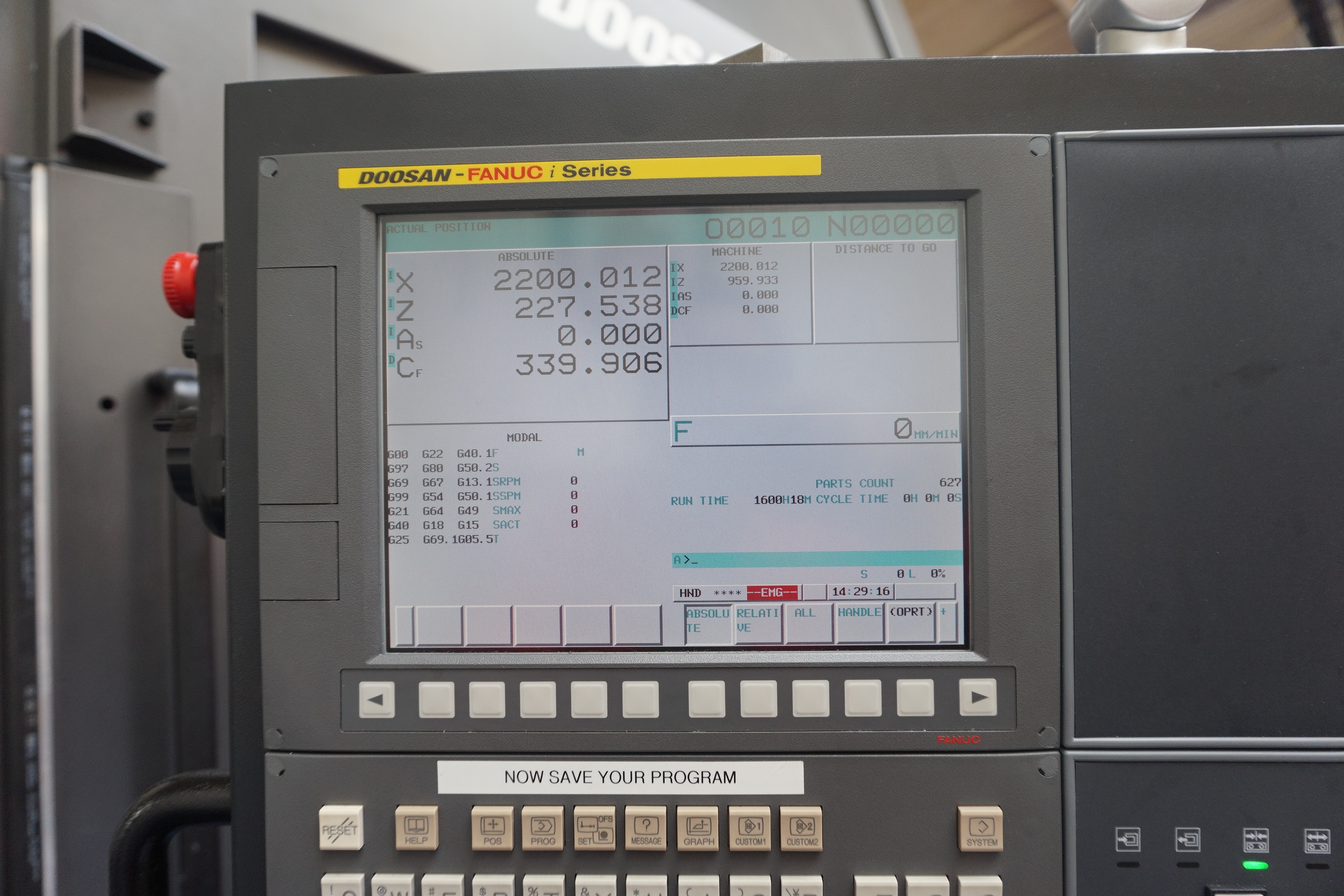 Run Time: 1600 hours, 3 mins. Cutting Time: 964 hours, 2 mins