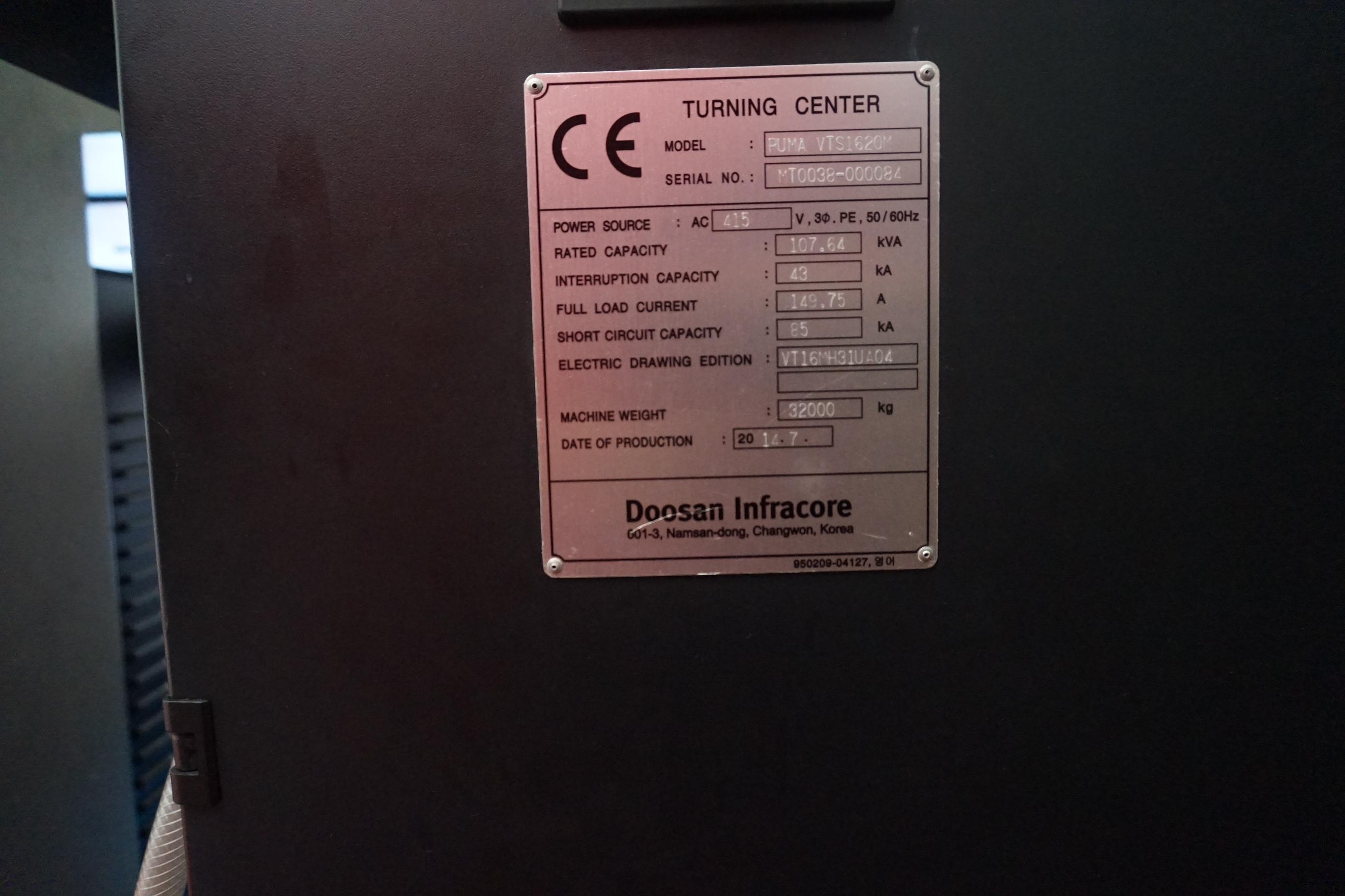 Lot 207: Doosan Puma VTS1620M Vertical Turning Centre