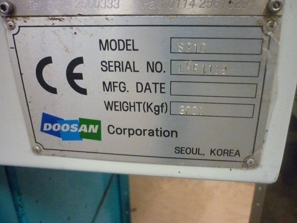 Doosan S310 CNC Lathe with Fanuc 21t Control, Distance Between Centres 450mm, 12 Station Turret, Swing Over Bed 500mm, Hole Dia. 77mm, X Travel 200mm, Y Travel 450mm, Tooling and Manuals. S/No. 1139 (2001)