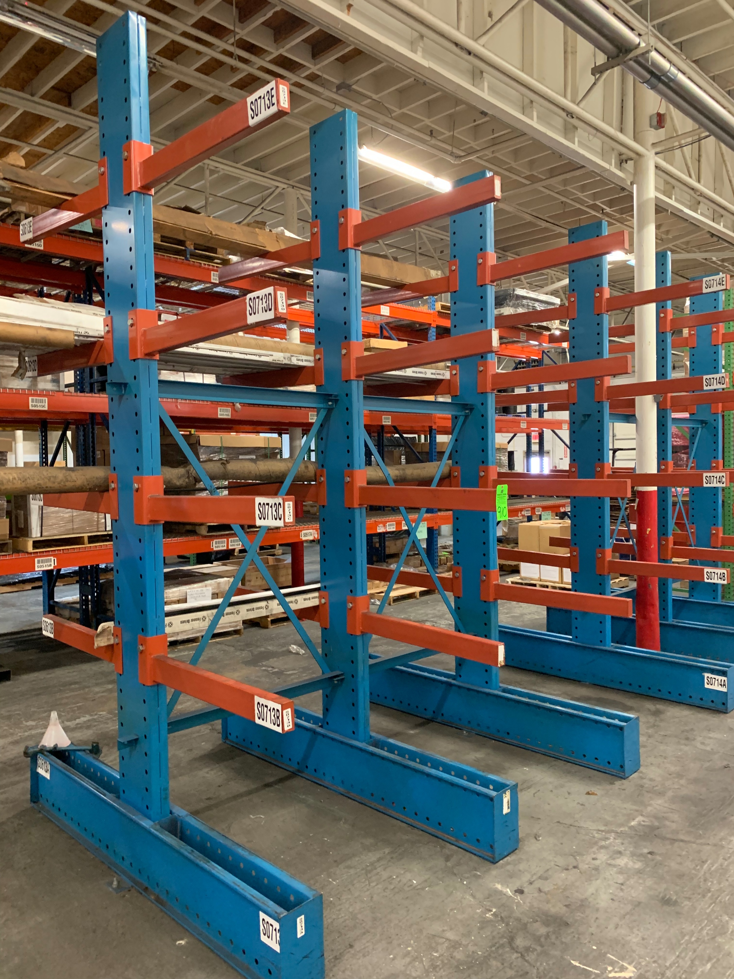 Lot 910: Dual Sided Cantilever Rack, 12'T x 8'W x 3' Arms