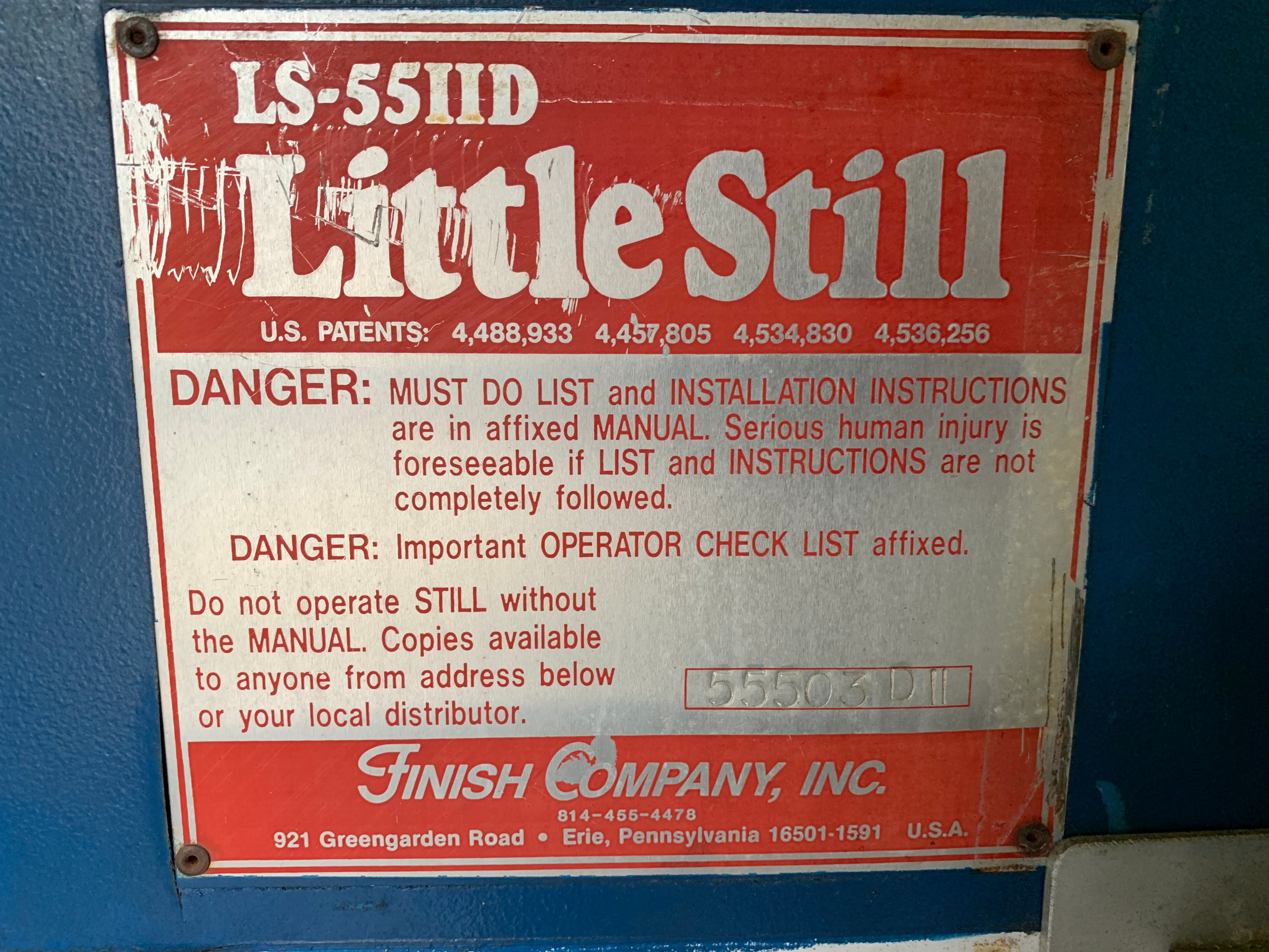 FINISH Company Little Still LS-55IID Solvent Recycling System, s/n 55503DII