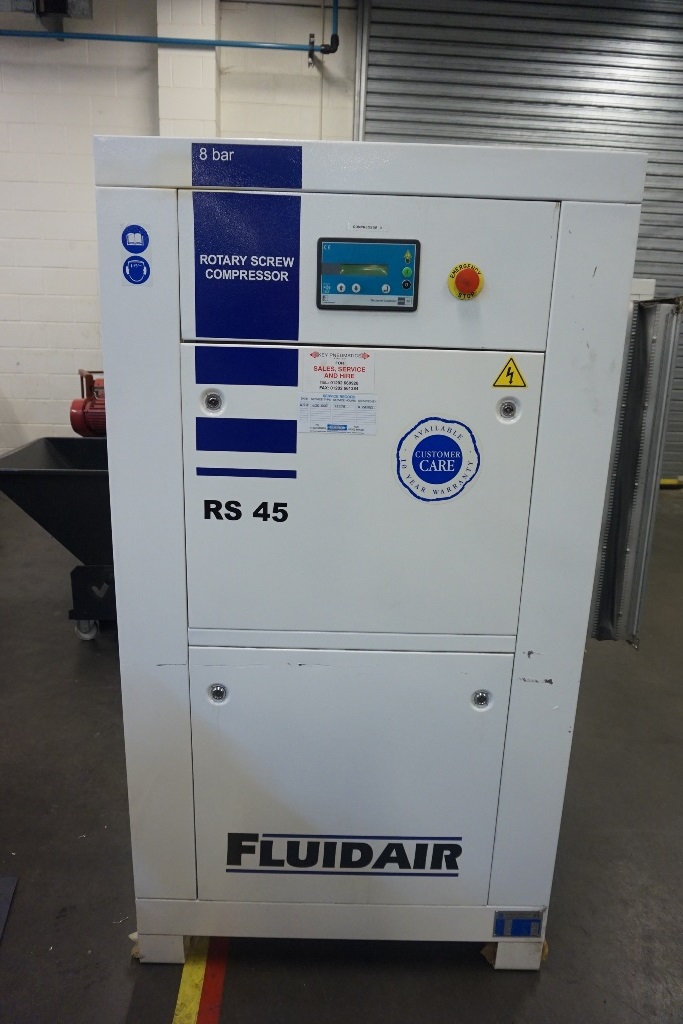 Fluidair Model RS 45 Rotary Screw Compressor, 8 Bar. S/No. F61214 (2004)