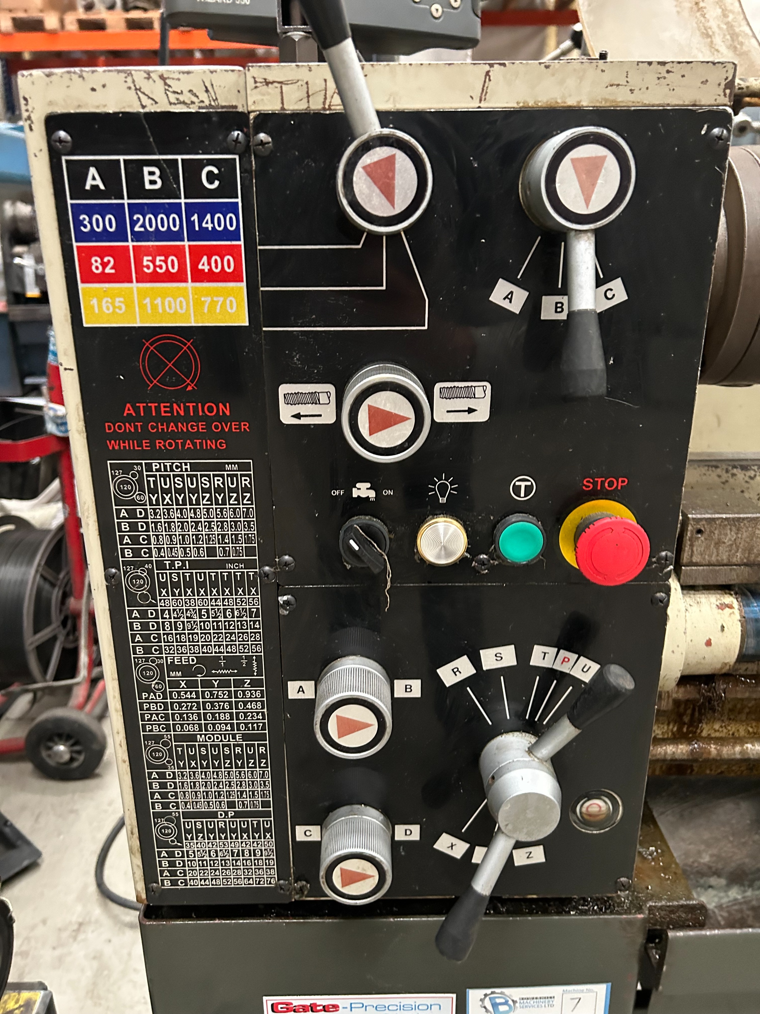 Gate G330E Gap Bed Lathe (2006), Swing Over Bed 330mm, Swing Over Cross Slide 195mm, Distance Between Centres 1000mm, Swing Over Gap 490mm, Width of Bed 190mm, Spindle Speeds (9) 80-2000rpm, Spindle Bore 40mm