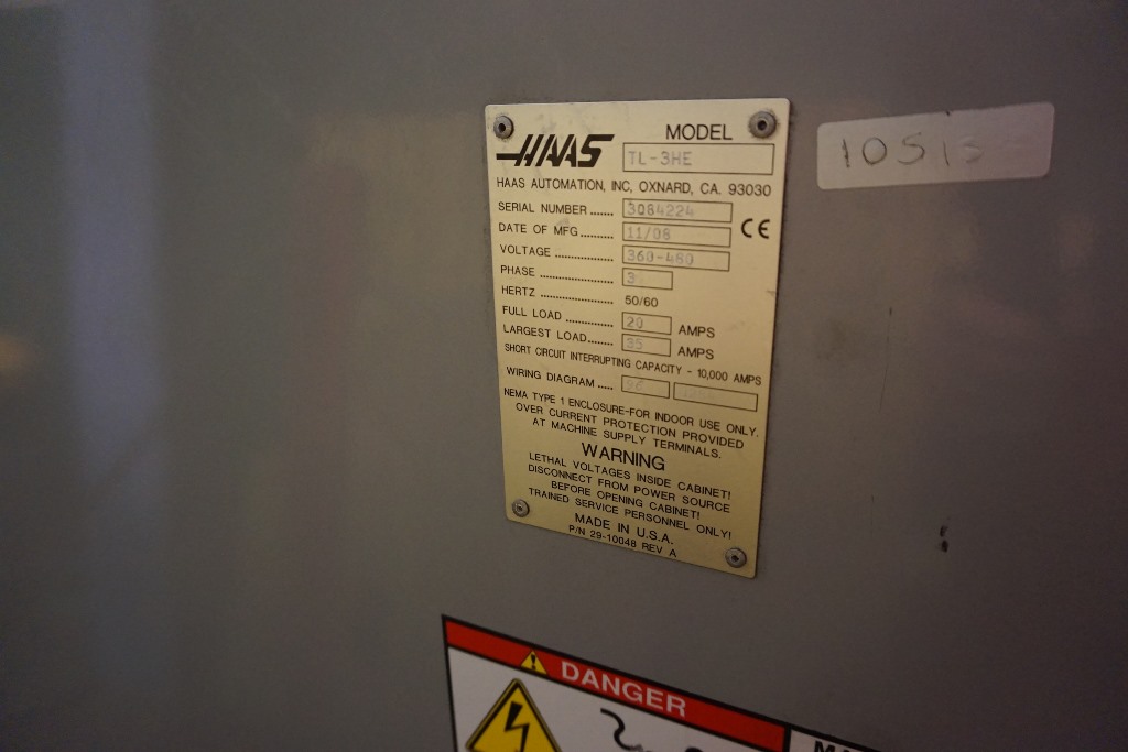Haas TL3 HE CNC Lathe with Haas Control, Quick Change Toolpost with holders, 12'' 3-Jaw Manual Chuck Tailstock, Max Cutting dia 20'' length 60''. S/No. 3084224 (2008)