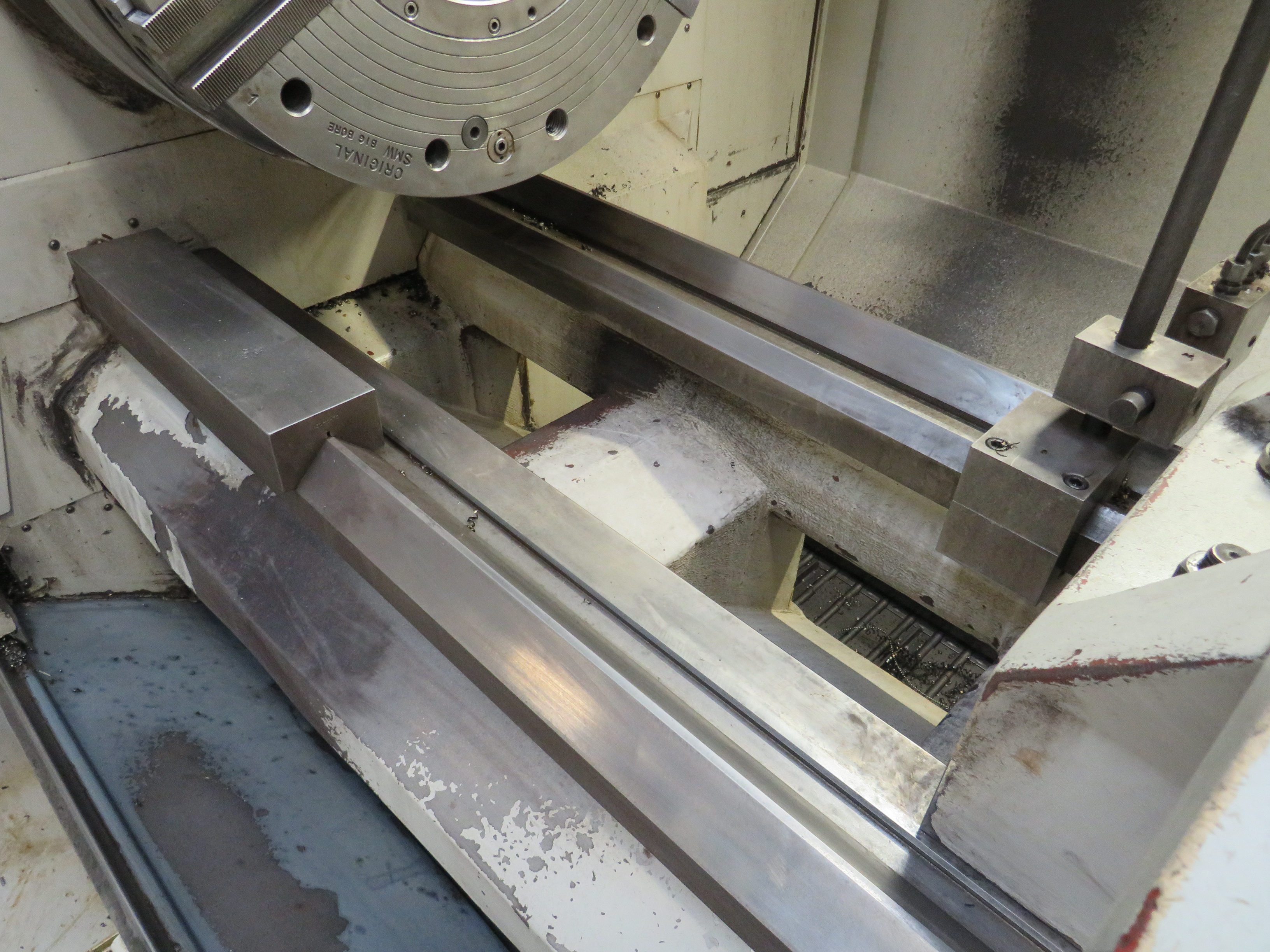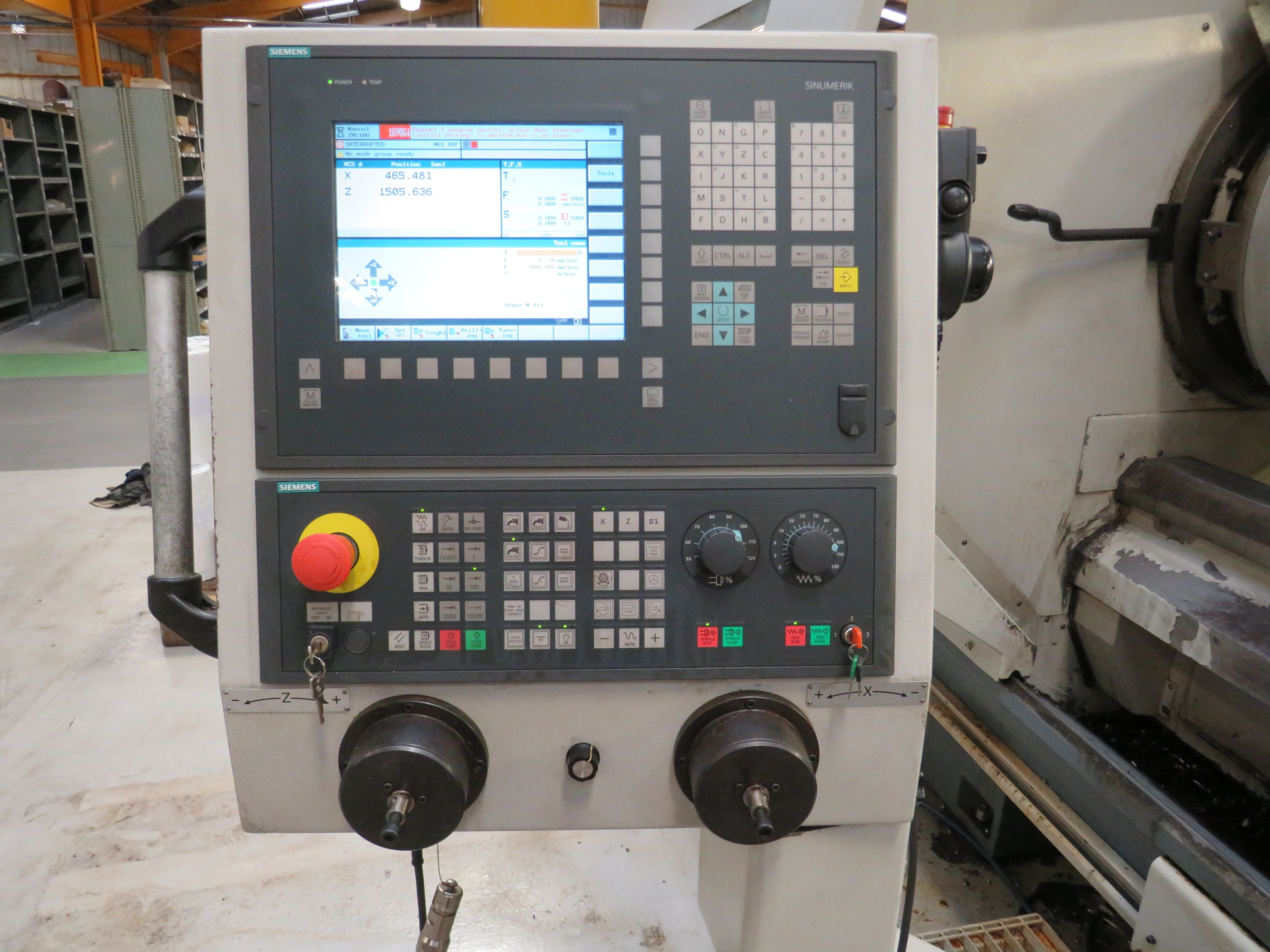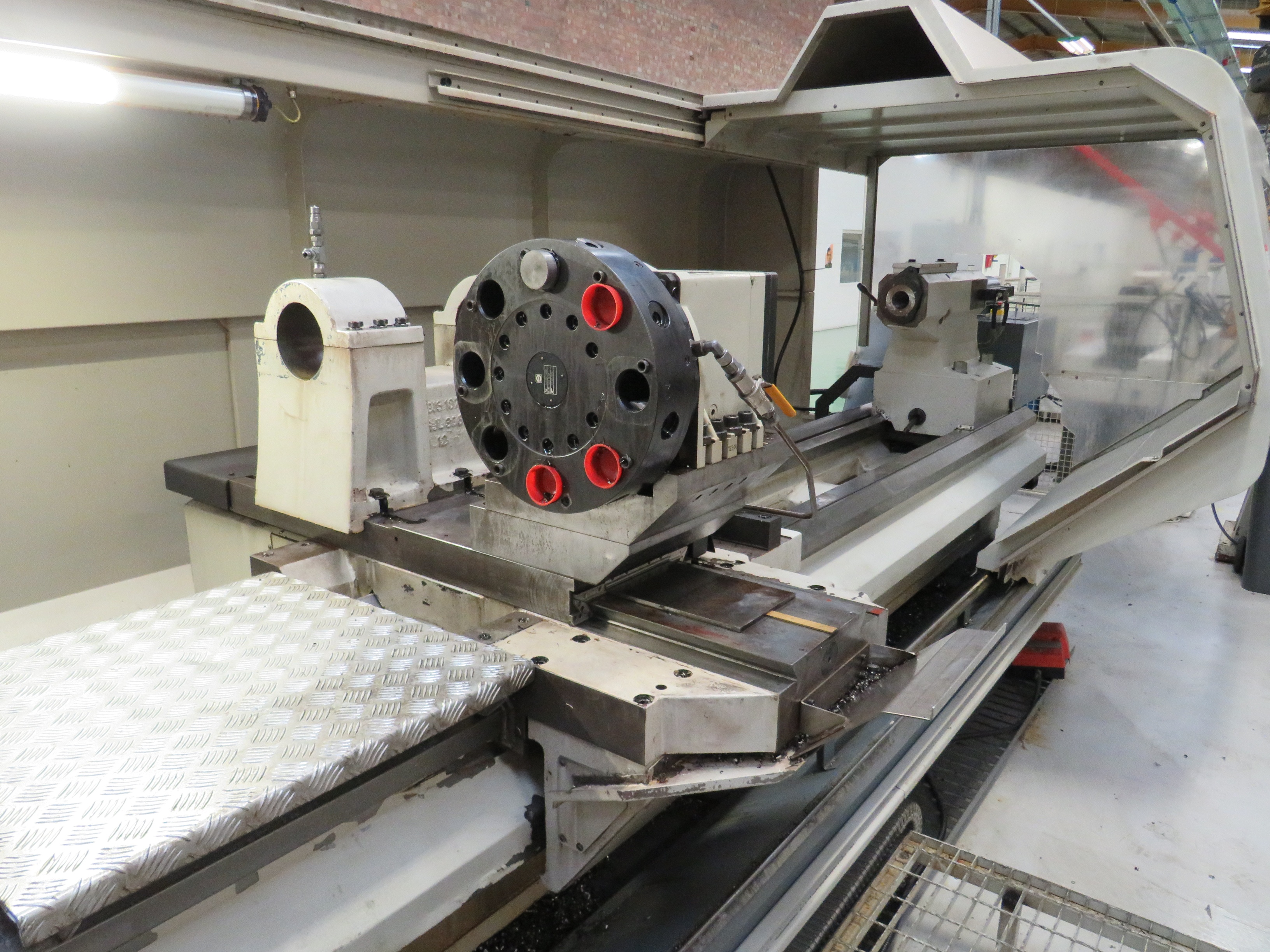 Haco FAT TUR 930MN CNC Lathe with Siemens Shop Turn CNC Control, Swing Over Bed 950mm, Swing Over Saddle 630mm, Maximum Distance Between Centres 4000mm, Spindle Speeds 4 1200rpm, Spindle Bore 320mm, Rapids 6m/min, Compete with 2 No 3 Point Fixed Steadies, Boring Bar Steady, 8 Position Duplomatic Turret, Powered Tailstock, Deep Hole Boring Bar, Swarf Conveyor, Main Motor 33kw, Approximate Dimensions 6400 x 2890 x 2170mm, Approximate Weight 10,200kg. S/No. 120452 (2012)