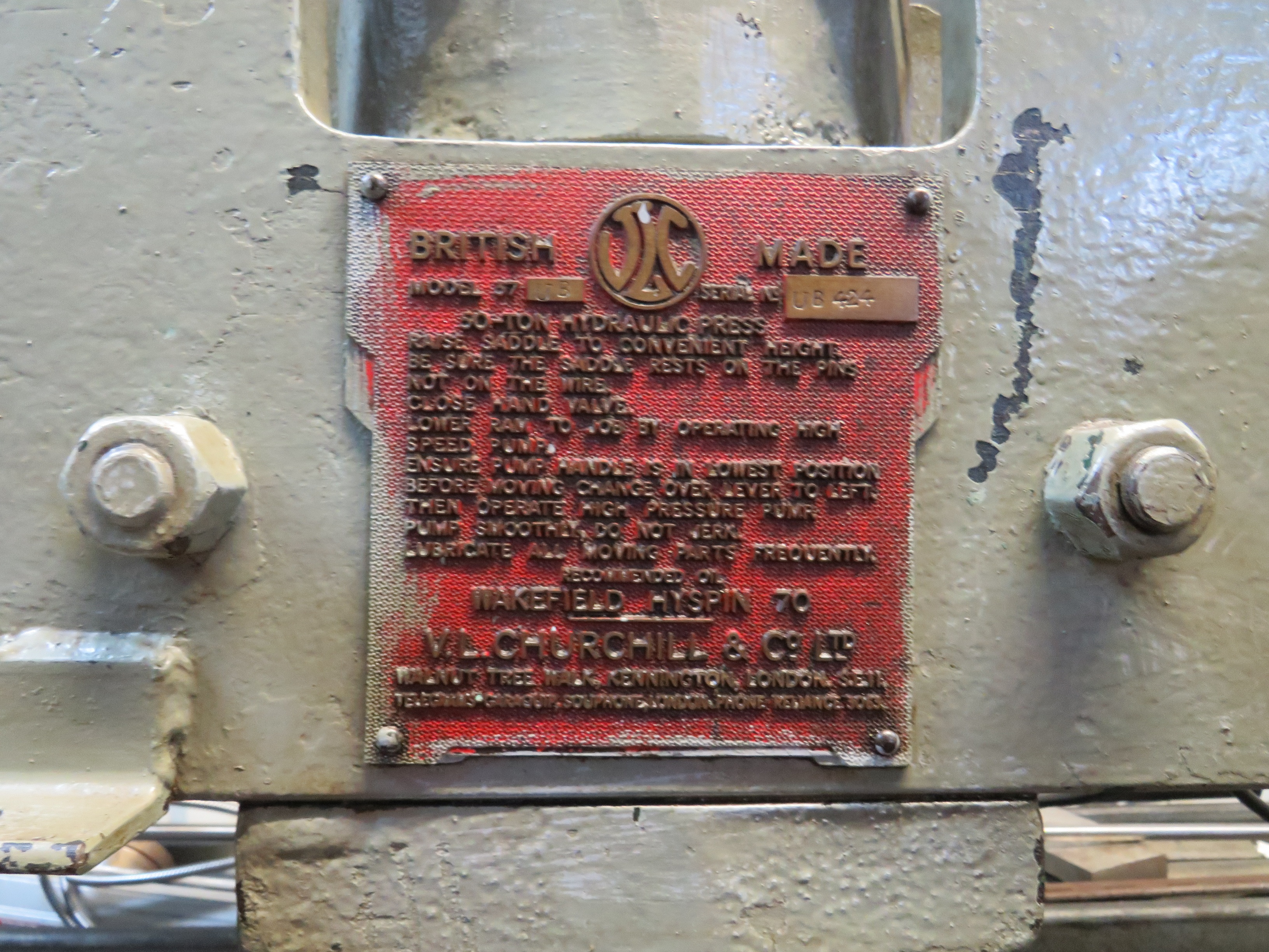JLC UB Hydraulic Garage Press. S/No. UB424