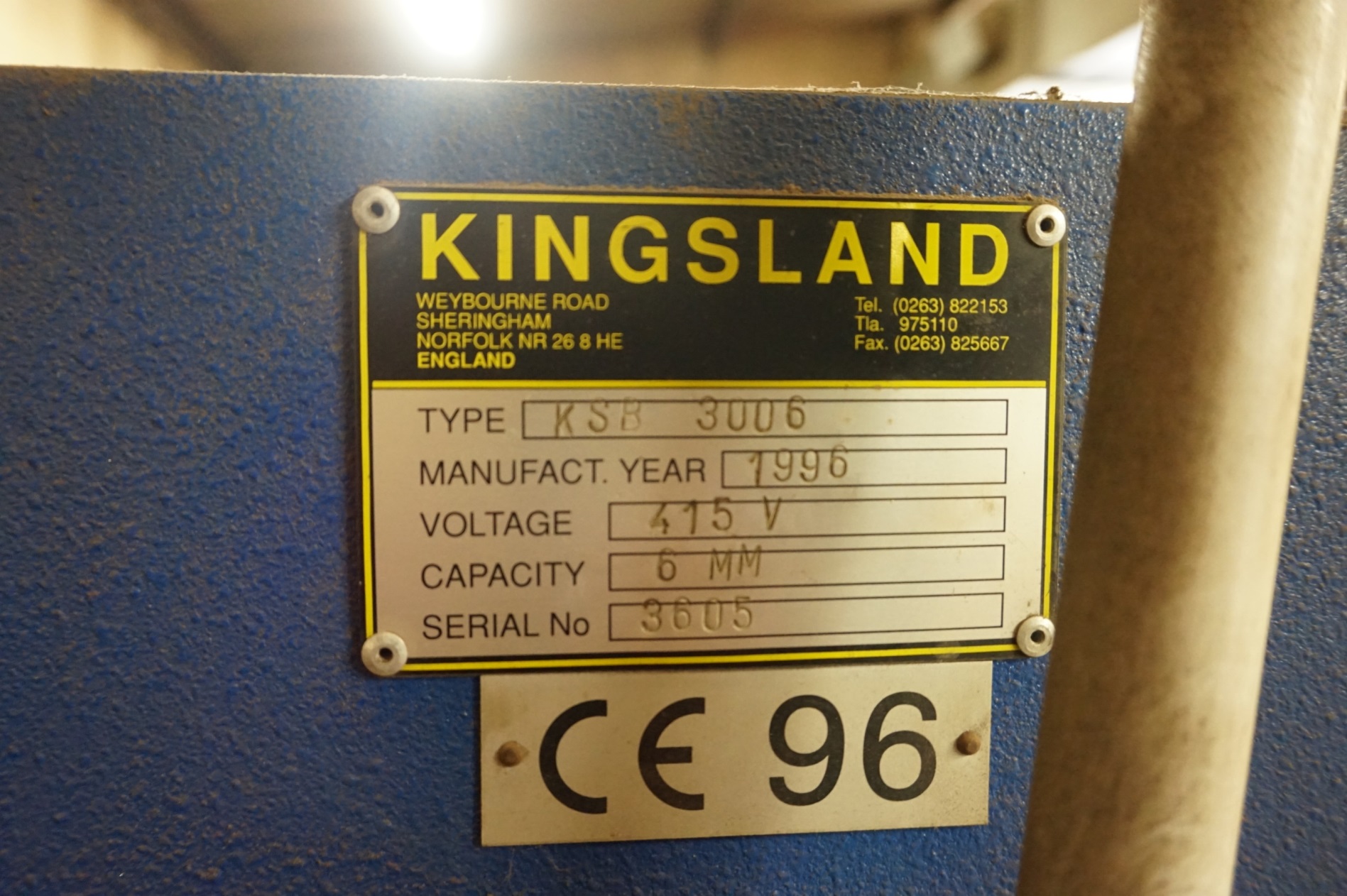 Kingsland KSB-3006 Hydraulic Guillotine, 3000mm x 6mm. S/No. 3605 (1996)