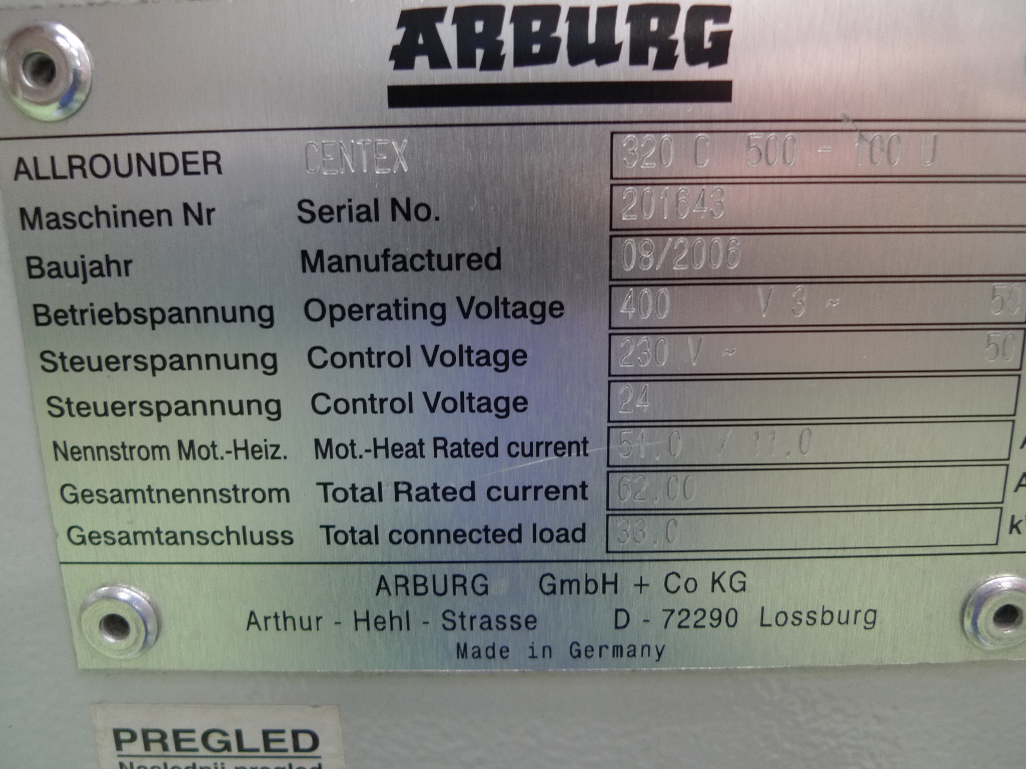 Arburg Allrounder Centex 320C 500-100U Vertical Plastic Injection Moulding Machine, Magnetic platens, Clamp force 500kN, Machine weight 2500 kgs, S/no 201643 (2006) Country of Origin Germany