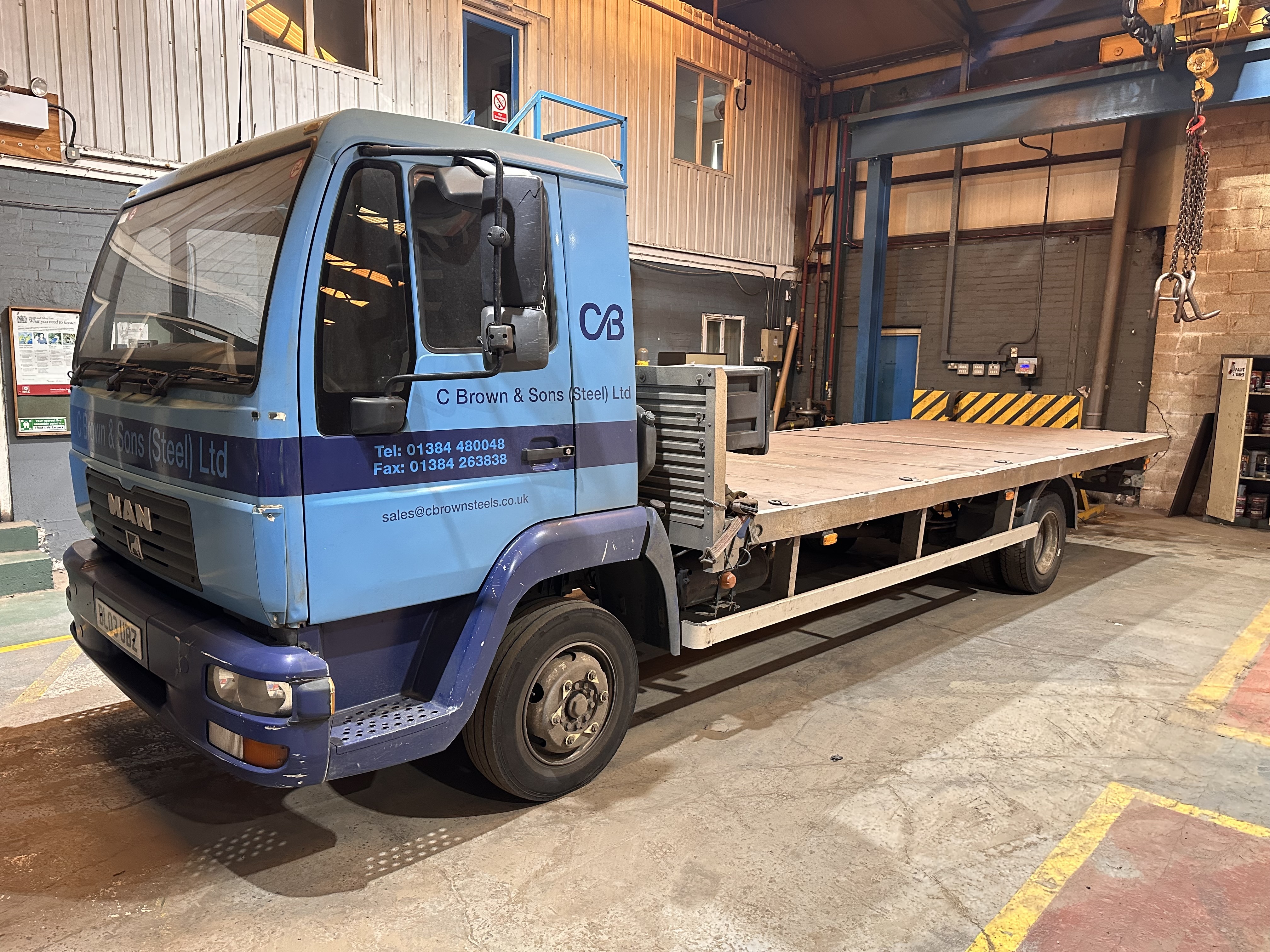 Man 8.155 Flat Bed Truck, 2 Axel Rigid Body, 6 Speed Manual, 4.5 Litre Diesel, 19 ft Bed. Registration Number: BL03 UBZ