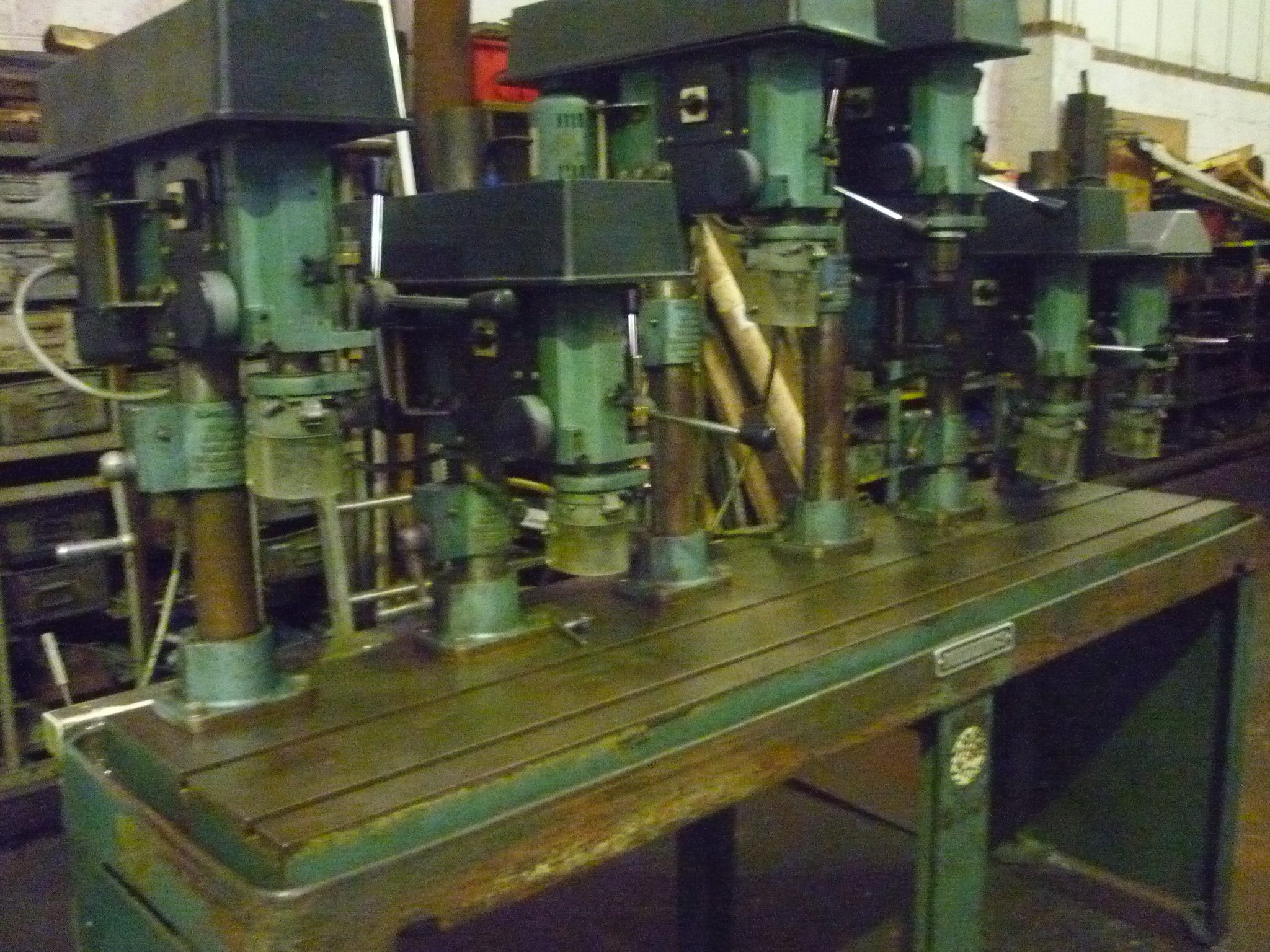 Meddings 6-Spindle Bench Drills. Country of Origin: United Kingdom.