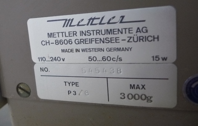 Mettler P3 Scale Max 3000g. S/No. 545438