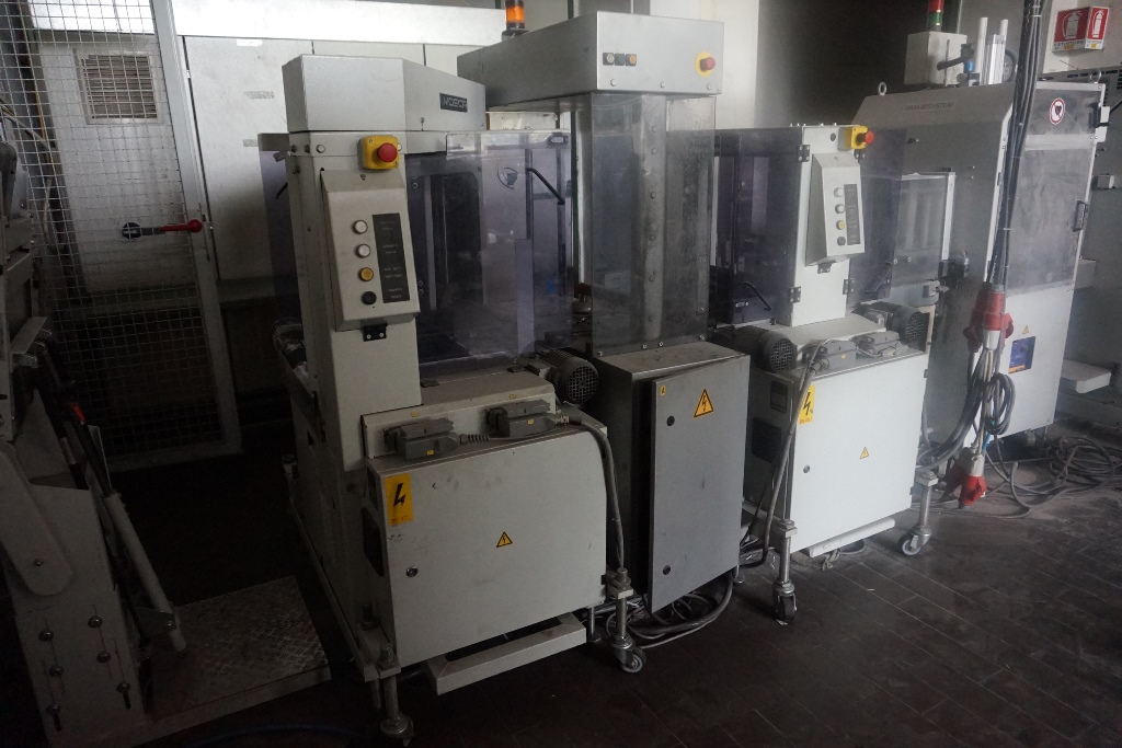 Mosca RO-TR1-5 Tandem Strapper S/No. 70385 , 70386 with Turnover Conveyor
