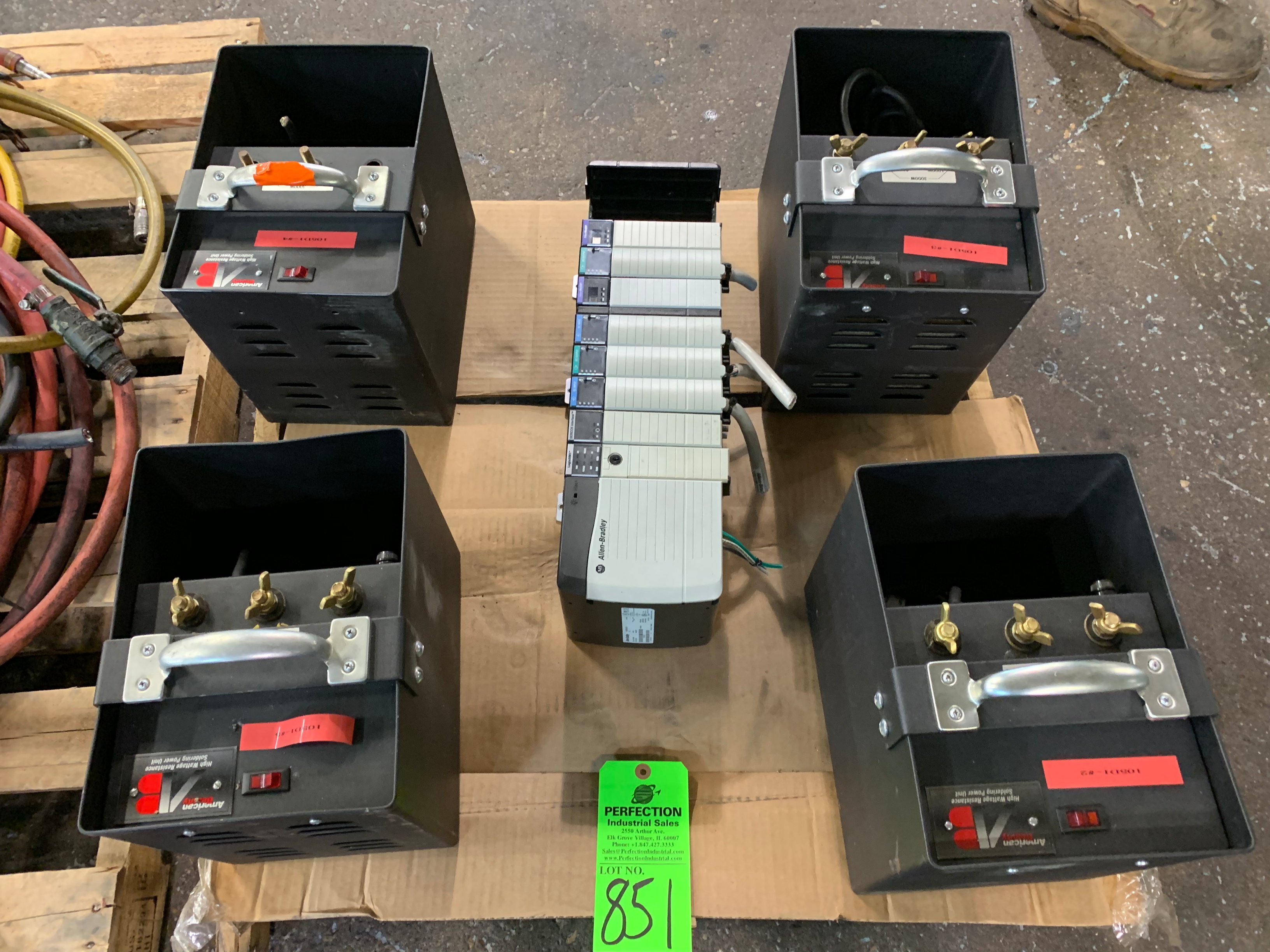 Lot 851: Pallet Comprising (4) American Beauty High Wattage Resistance Soldering Power Units w/ Allen Bradley 1756-PA75/B AC Power Supply