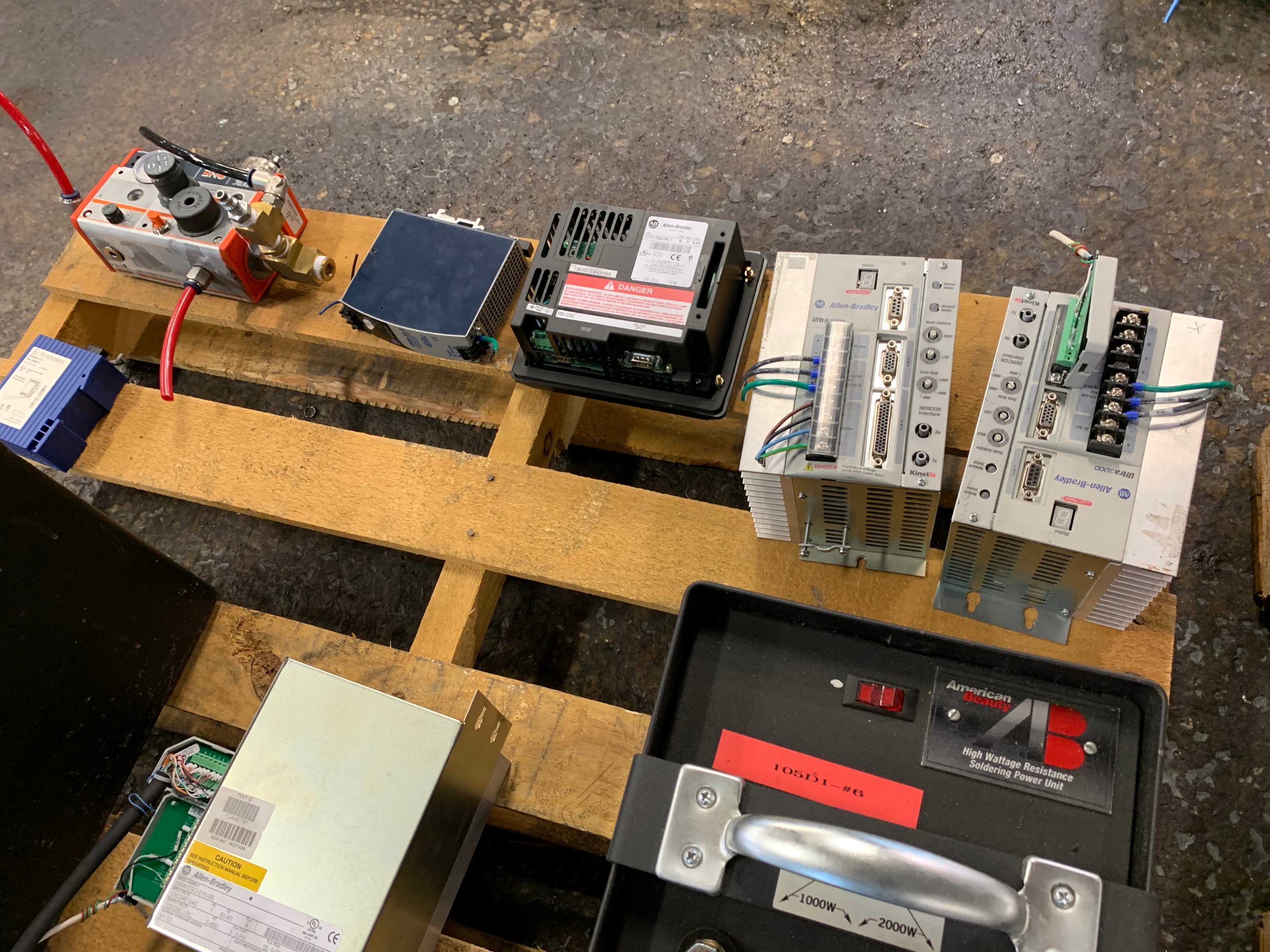 Pallet Comprising (4) American Beauty High Wattage Resistance Soldering Power Units w/ Manifolds, Allen Bradley Ultra 3000 Servo Drives