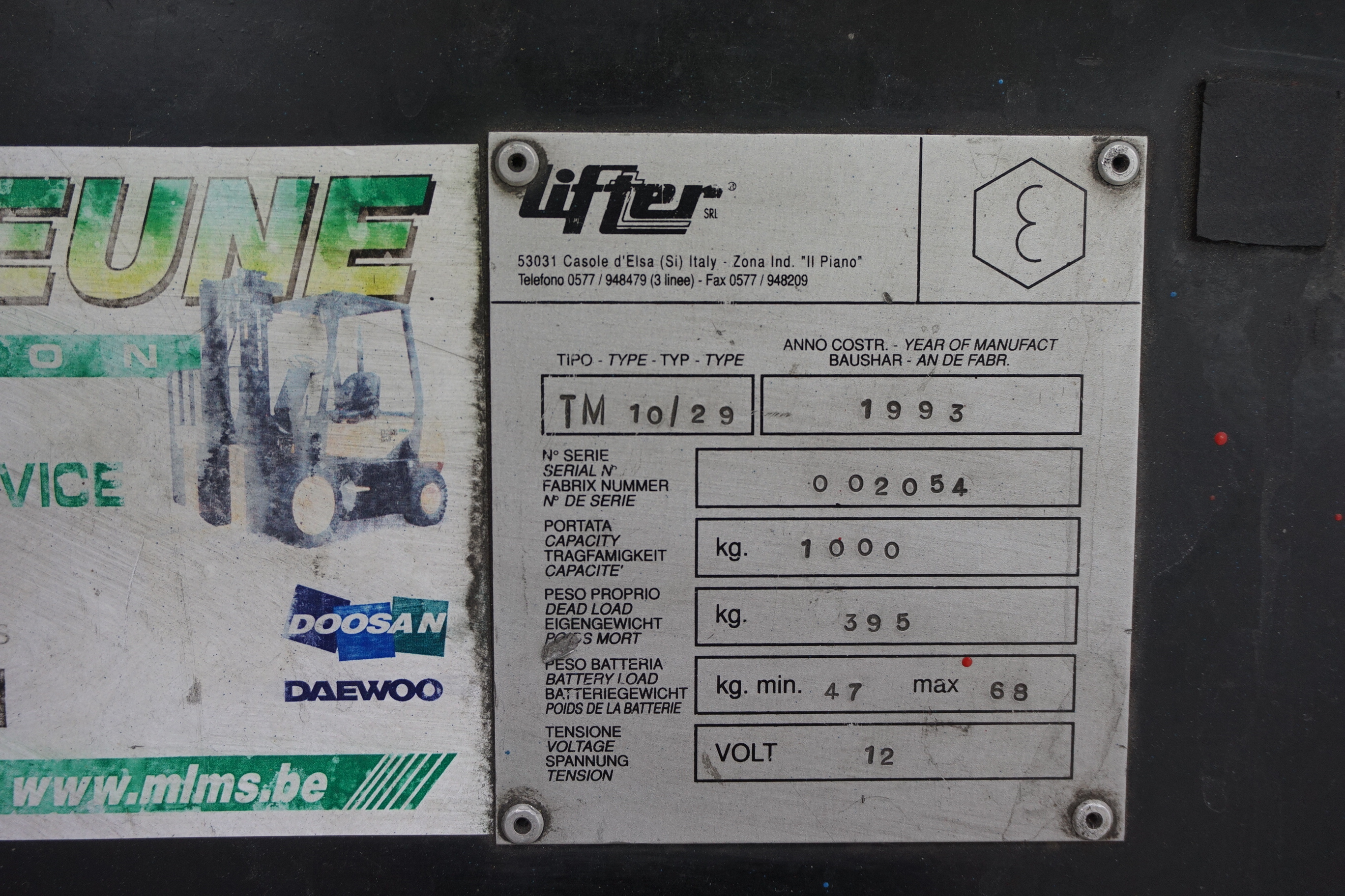 Pedestrian Battery Operated Hydraulic Lift, Type TM 10/29, Capacity 1000kg. S/No. 002054 (1993)