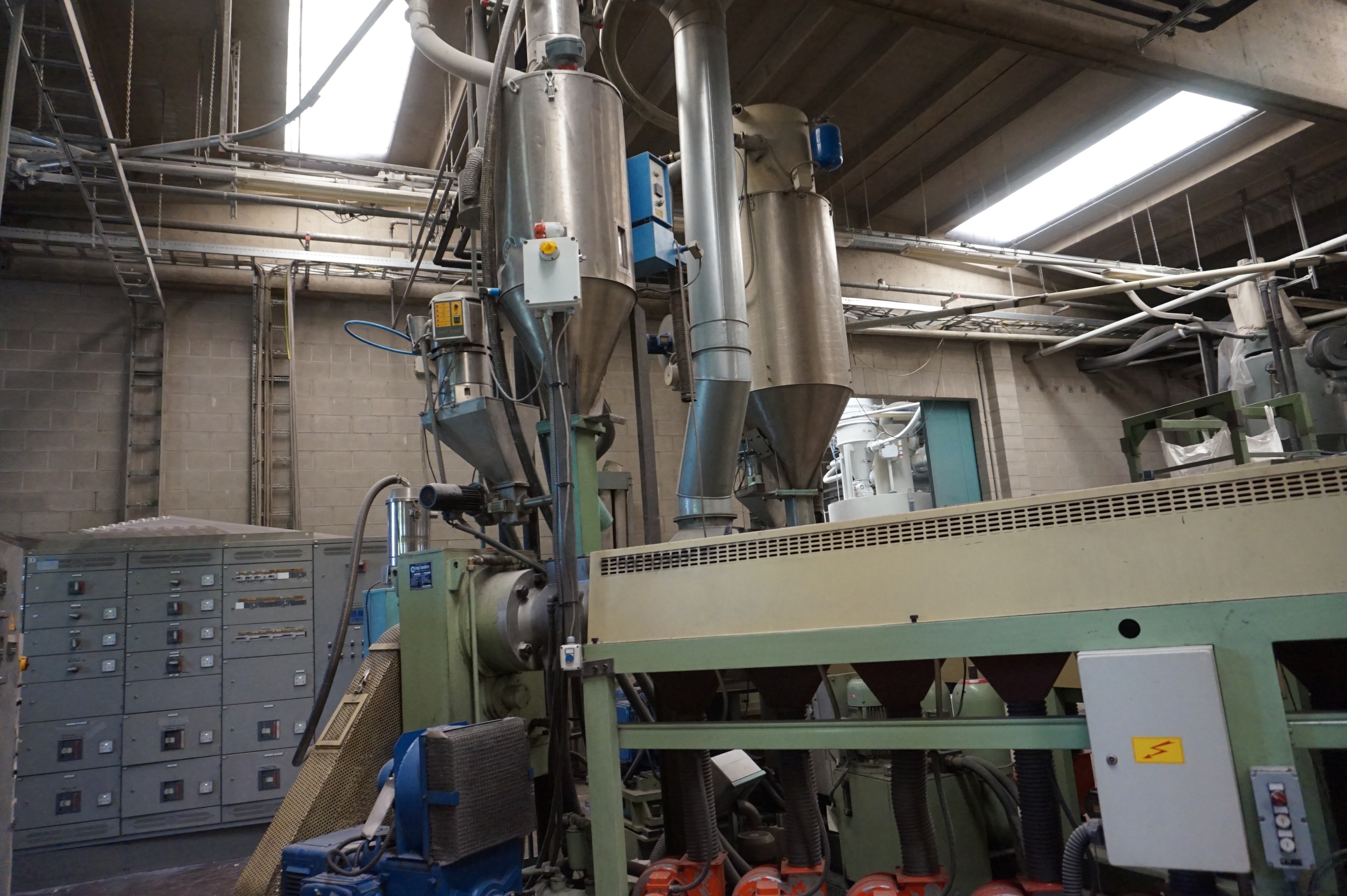 Extruder S/No. 16537 (1993) with Hopper Loader, Bandera diam. 80mm
