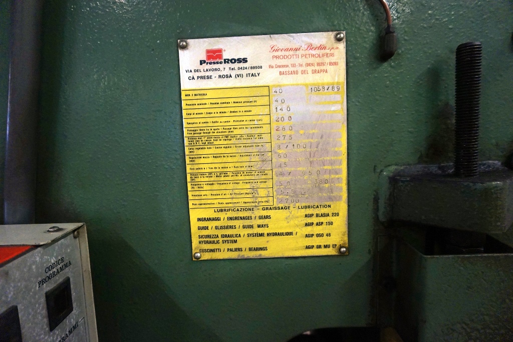 Presse Ross 40 Ton Power Press, S/No. 1058 (1989)