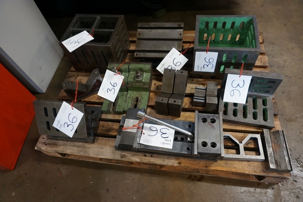 Qty of V Blocks, (3) Cubes 18" x 12" x 9", (2) Cubes 10" x 9" x 12", (2) Adjustable Angle Plates 10" x 7" & Vice