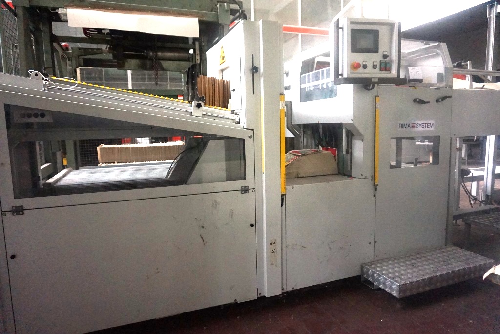 Rima RS 600 Horizontal Log Stacker S/No. 121-0097 with Control + CP1 and Infeed turnover conveyor (2009)