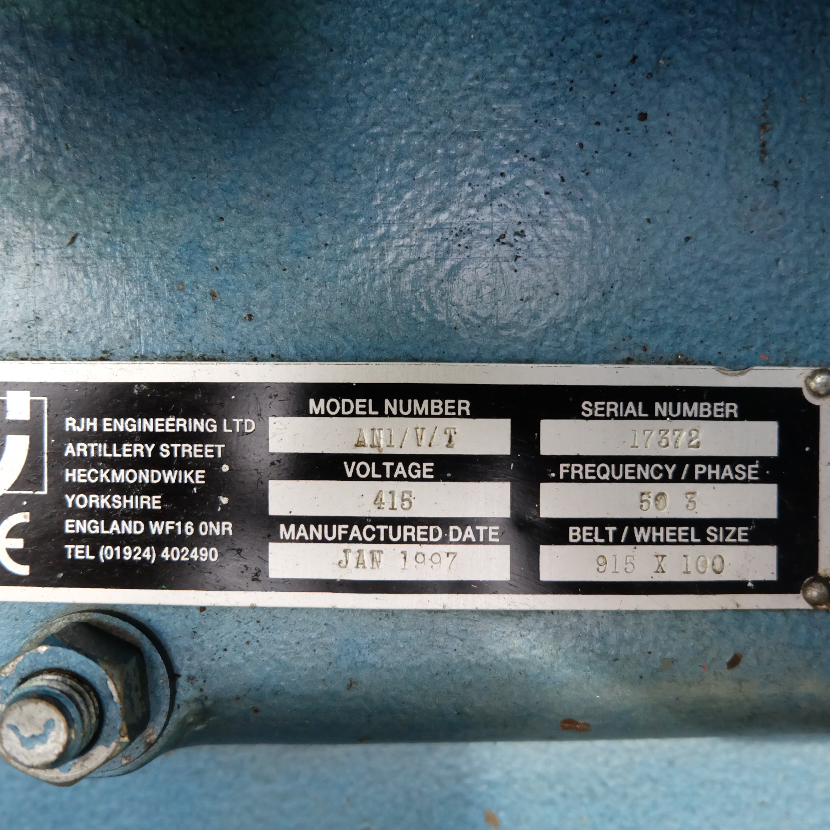 RJH Vertical Bandfacer, Belt Size 100mm x 915mm, Motor Power 0.75kw, 3 Phase 415V, Mounted on Dust Extractor.