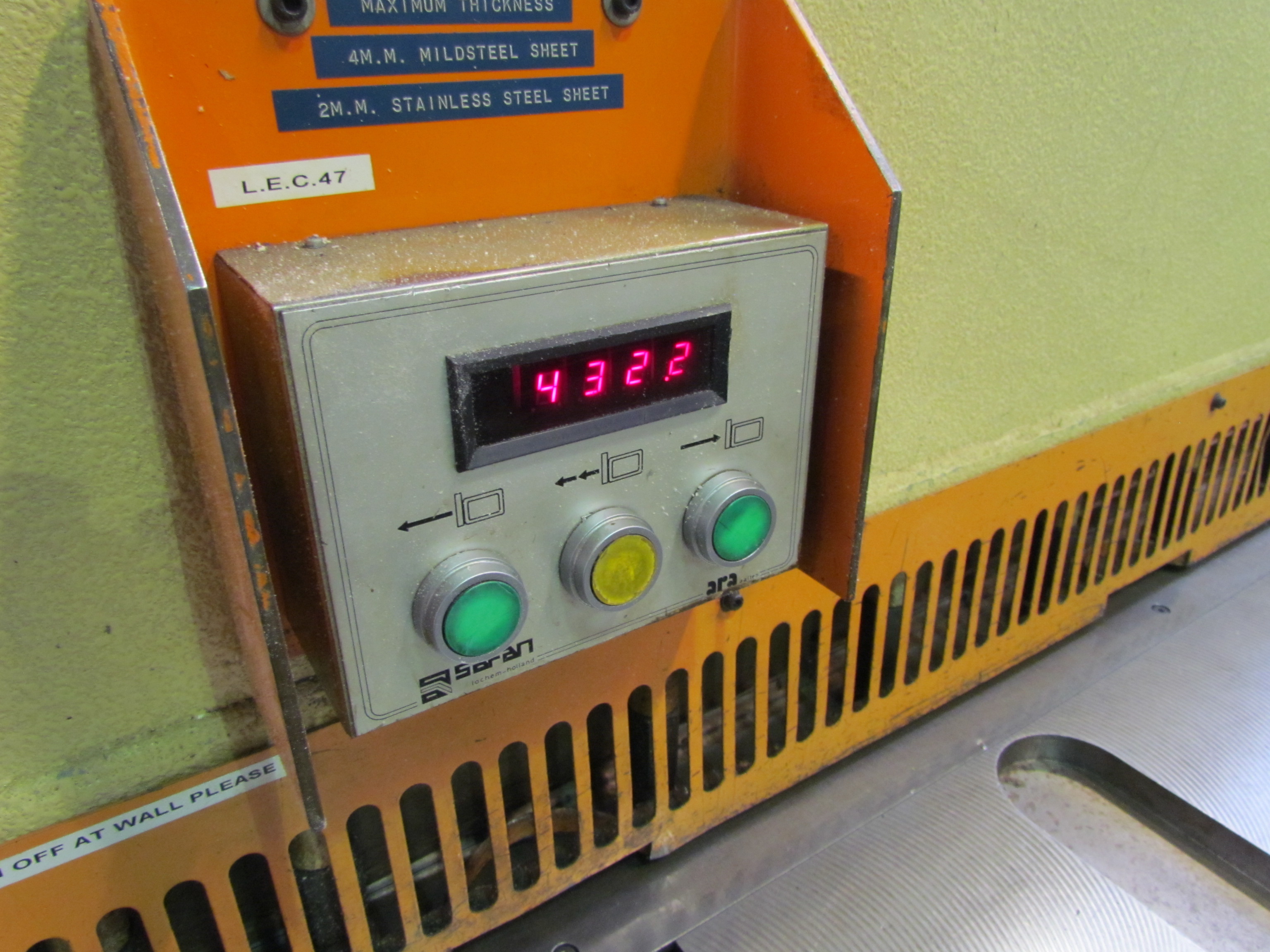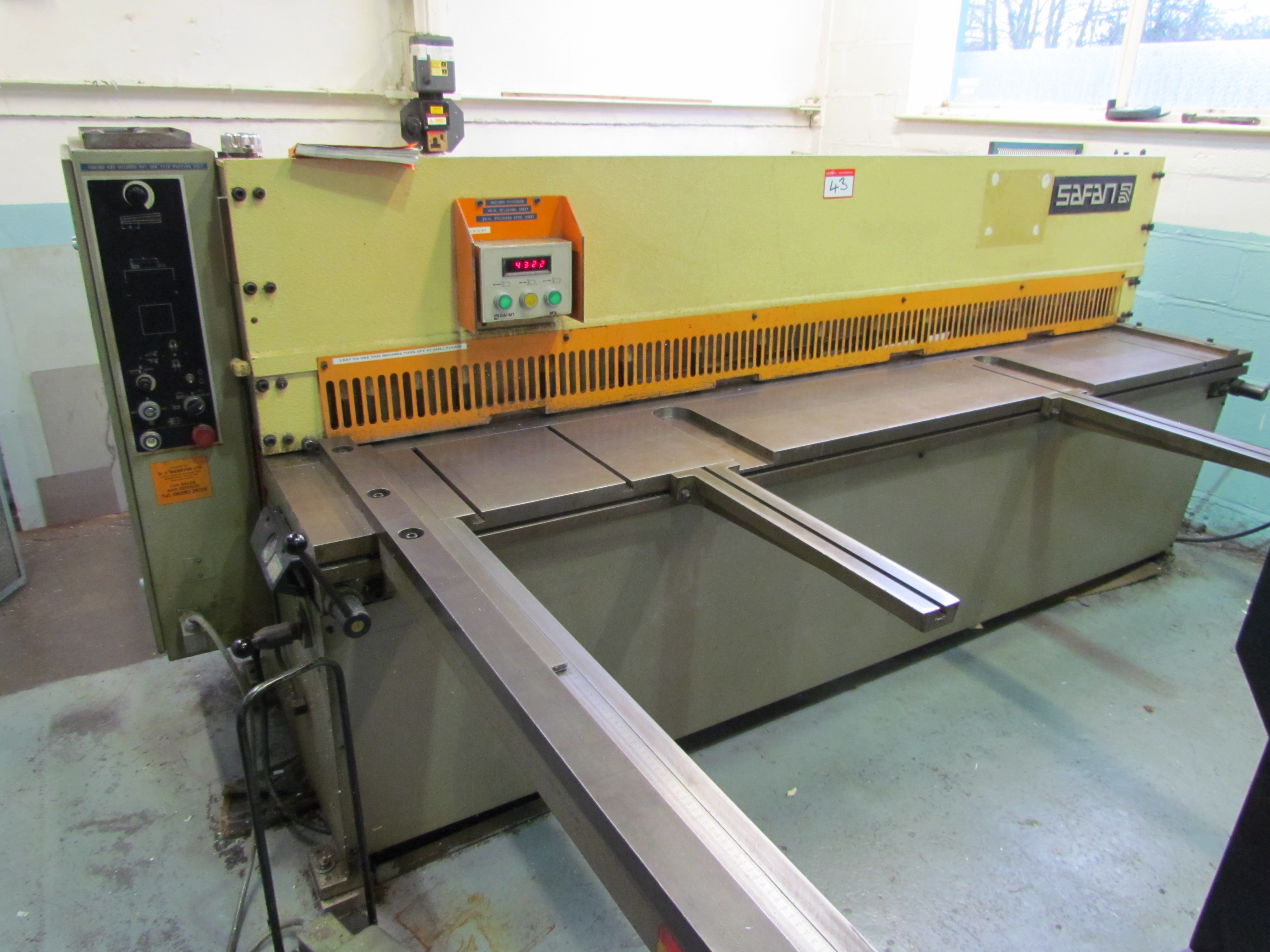 Safan VS255-4 Guillotine, Length 2.5m, Max Thickness 4m.m Midsteel Sheet, 2.m.m Stainless Steel Sheet, Spare Bladed. S/No. B7205 (1995)
