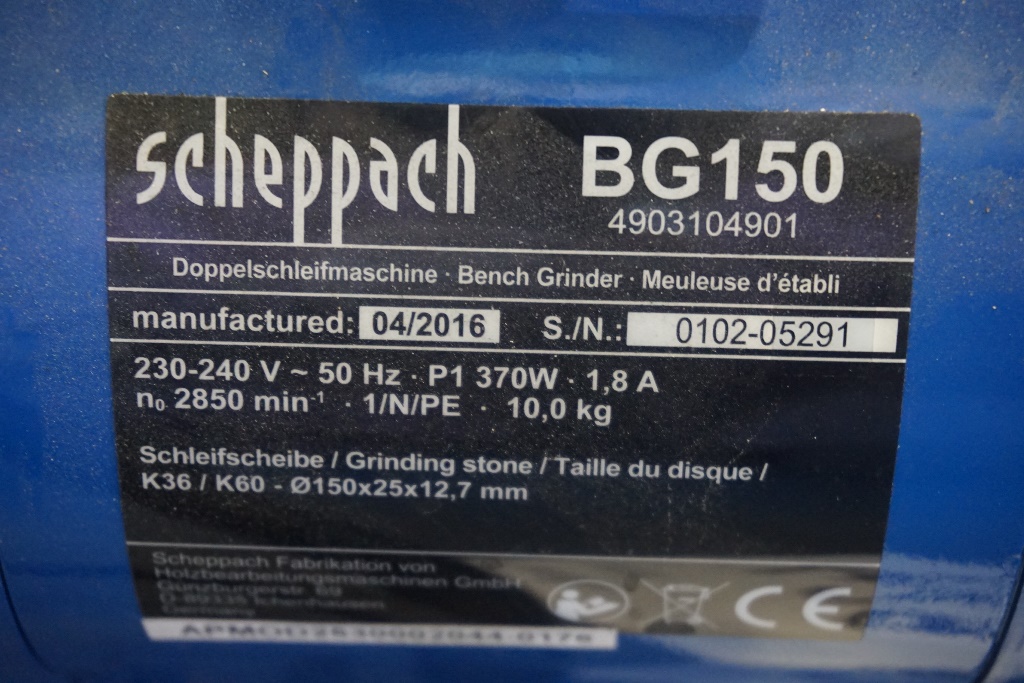 Scheppach BG150 6" Double Ended Grinder. S/No. 0102-05291